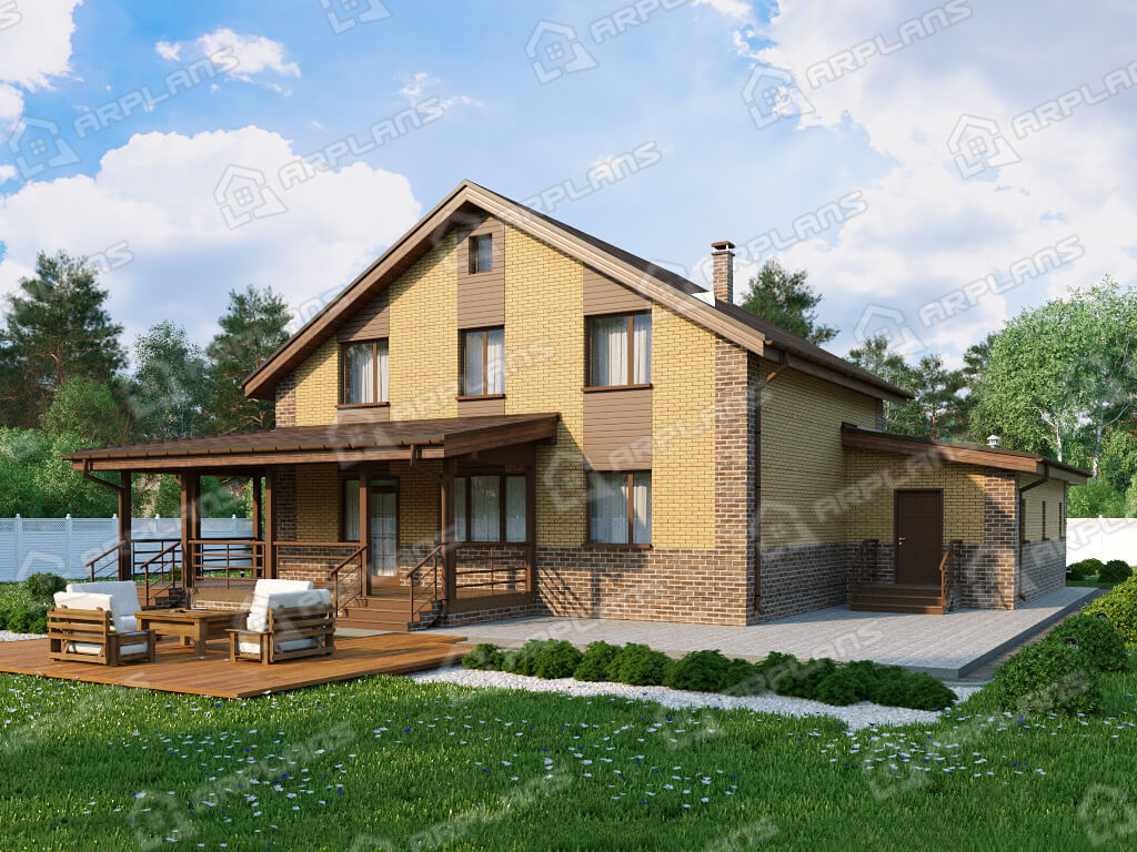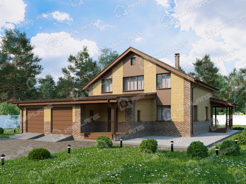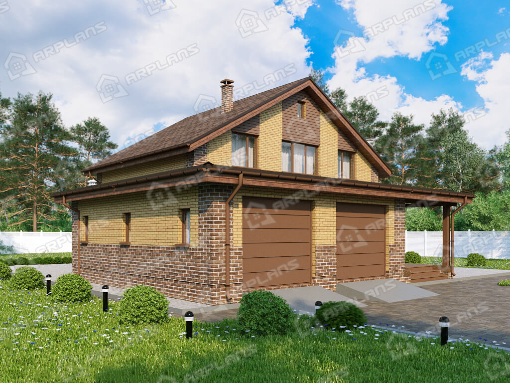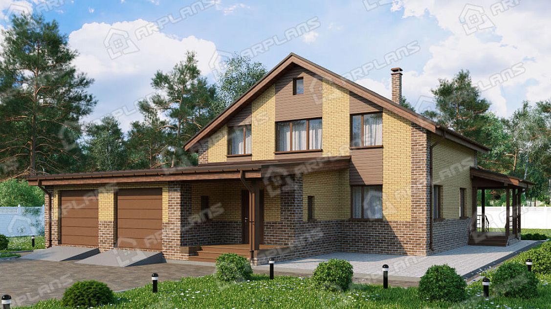Проект дома с гаражом на 2 машины и 3 спальнями S4-274 (К-349)