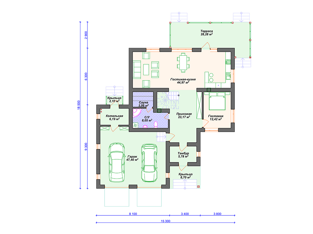 | Гараж | 2 машины |