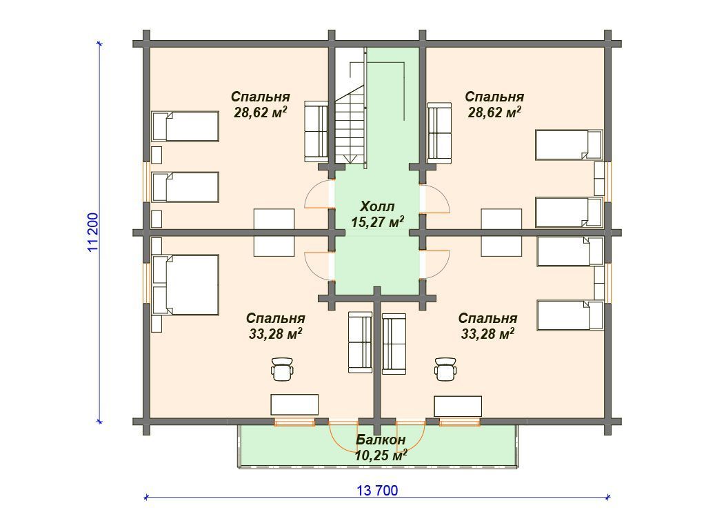 Проект деревянного дома 11 на 14 м с мансардой S4-301 (ДО-076)