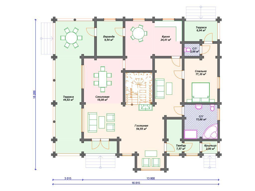 | Материал стен | оцилиндрованное бревно, профилированный брус, клееный брус |
