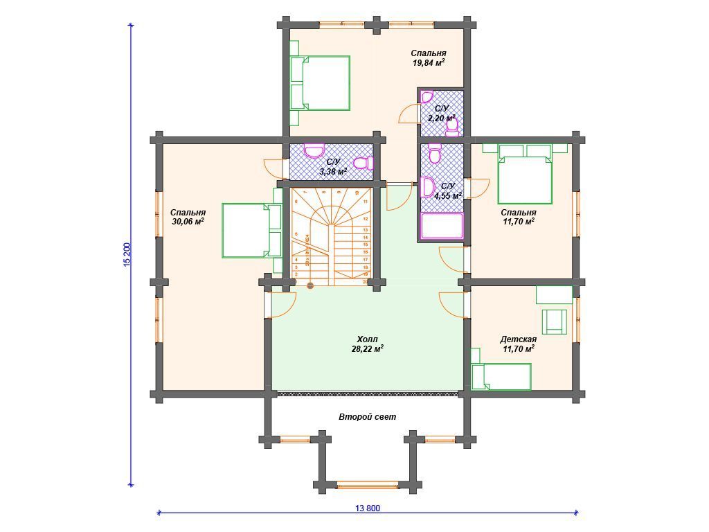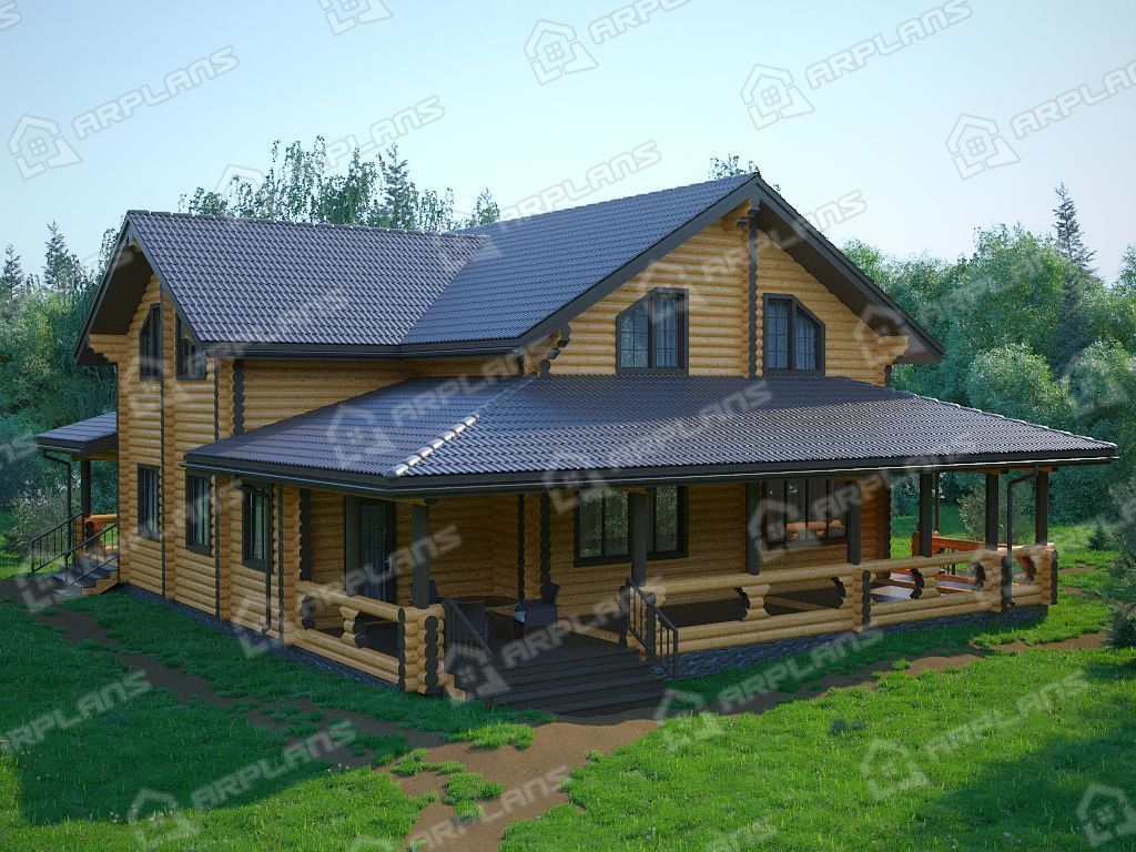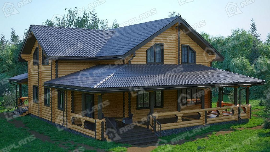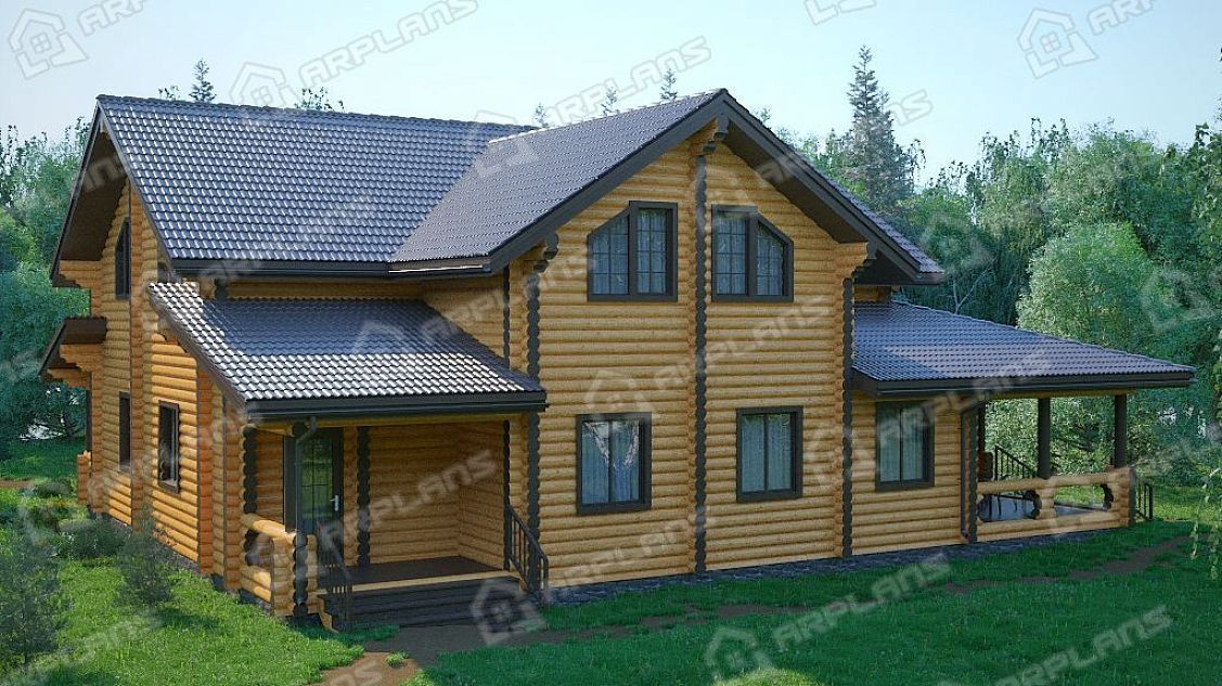 Проект деревянного дома из бревна 14 на 15 м с мансардой S4-311 (ДО-068)