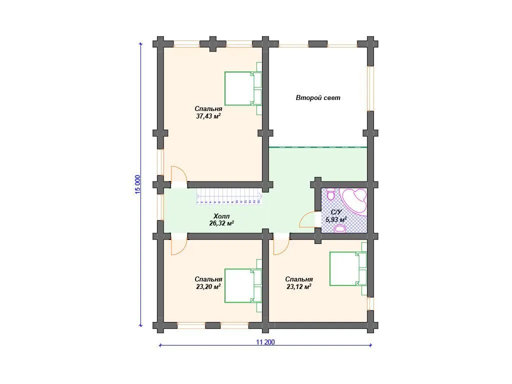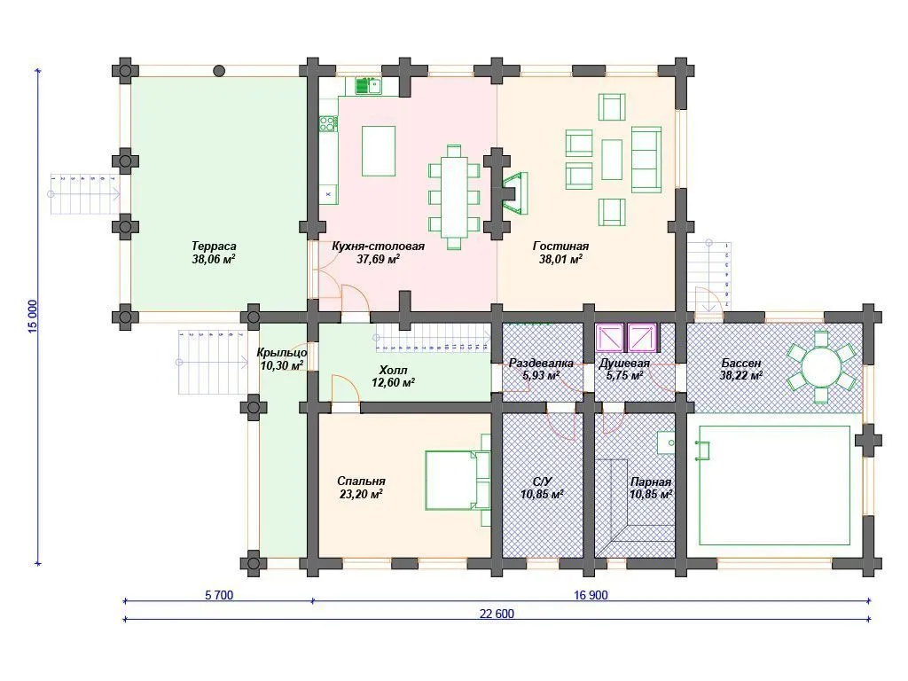 Проект деревянного дома из бревна 15 на 22 м с цокольным этажом S4-416 (ДО-111)