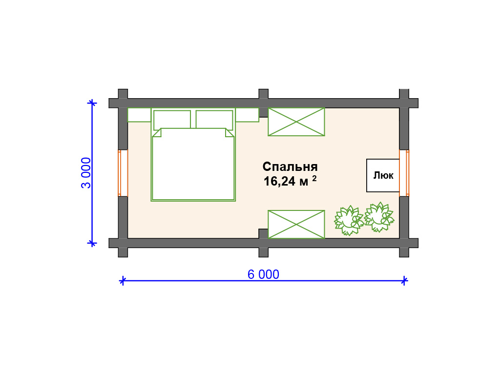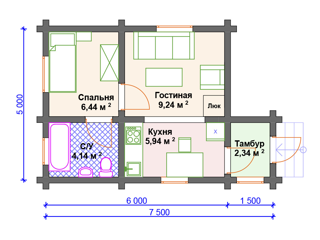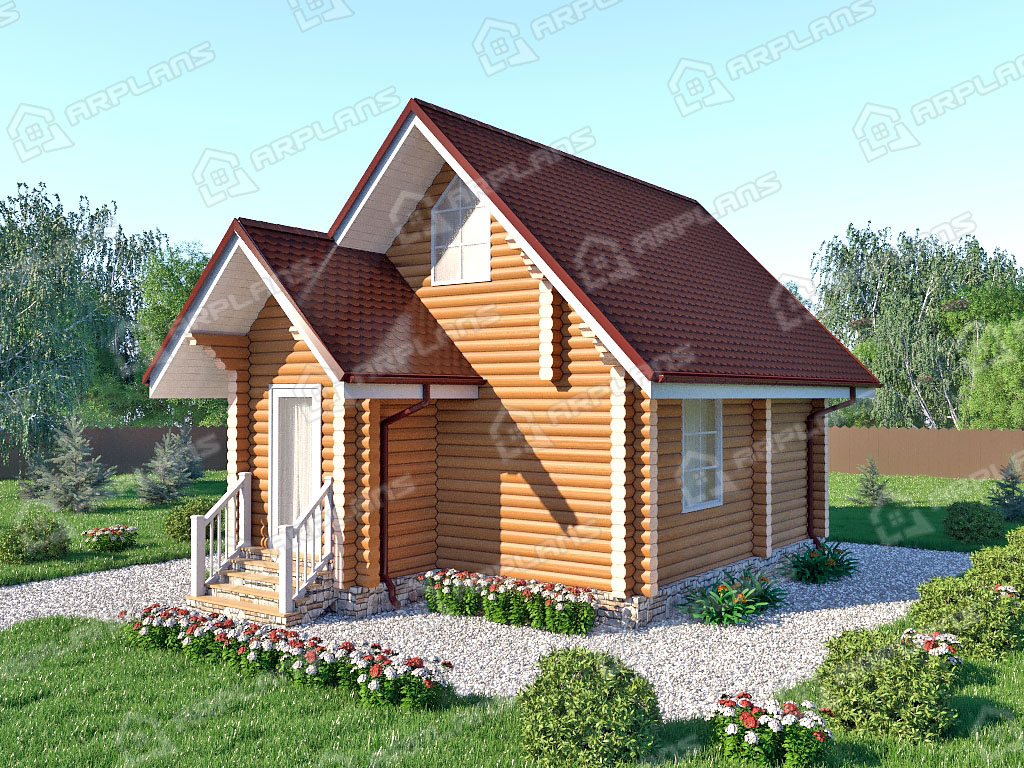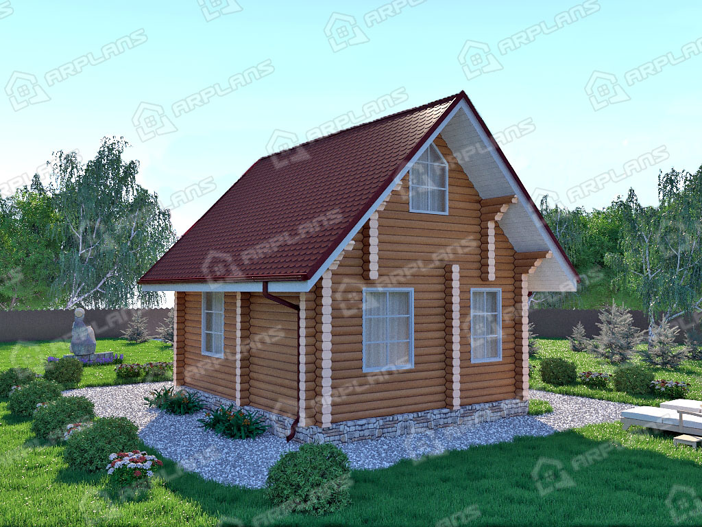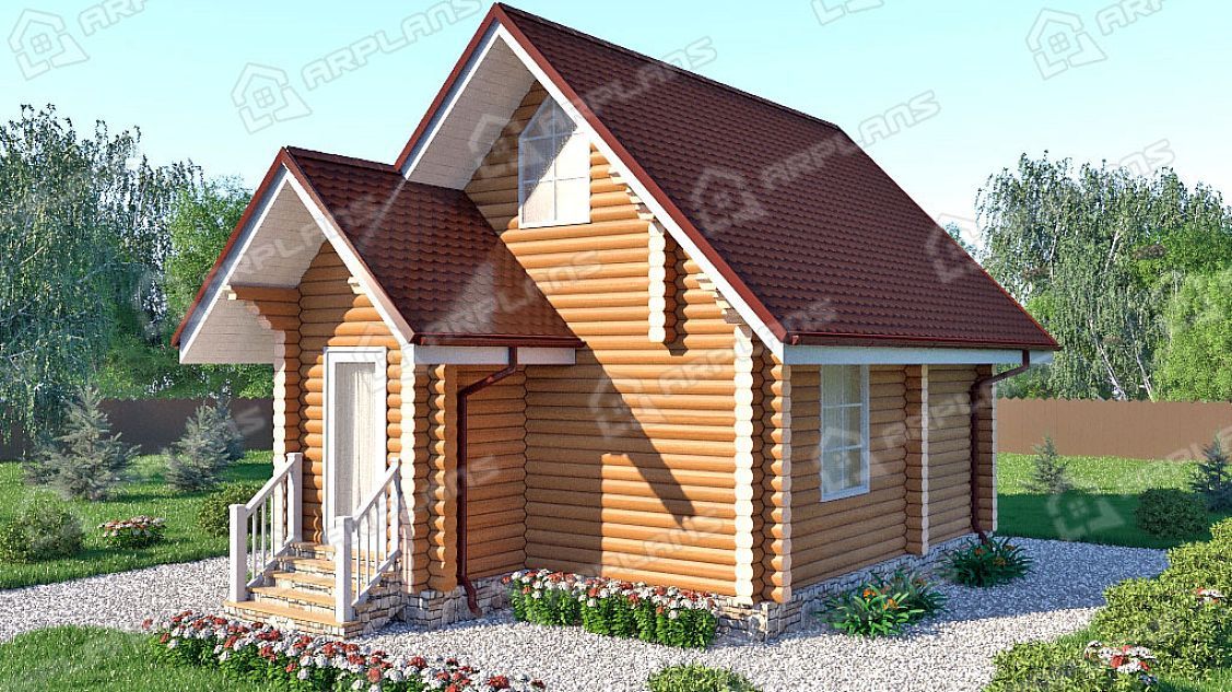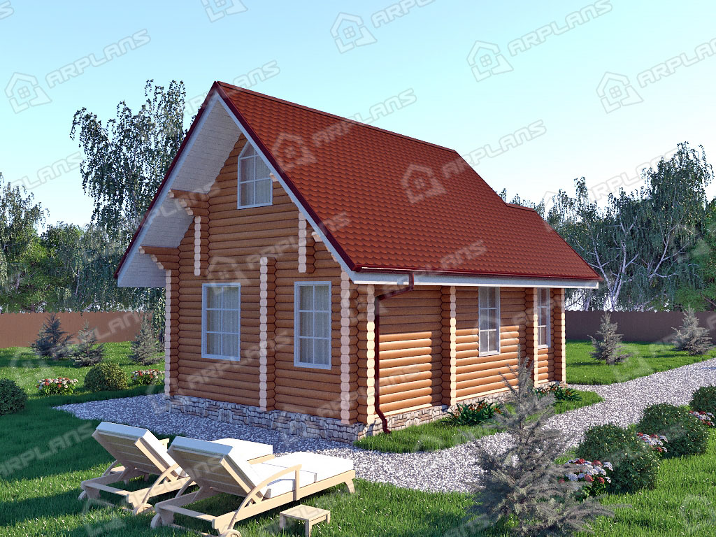 Проект деревянного дома из бревна 5 на 7 м S4-44 (ДО-016)