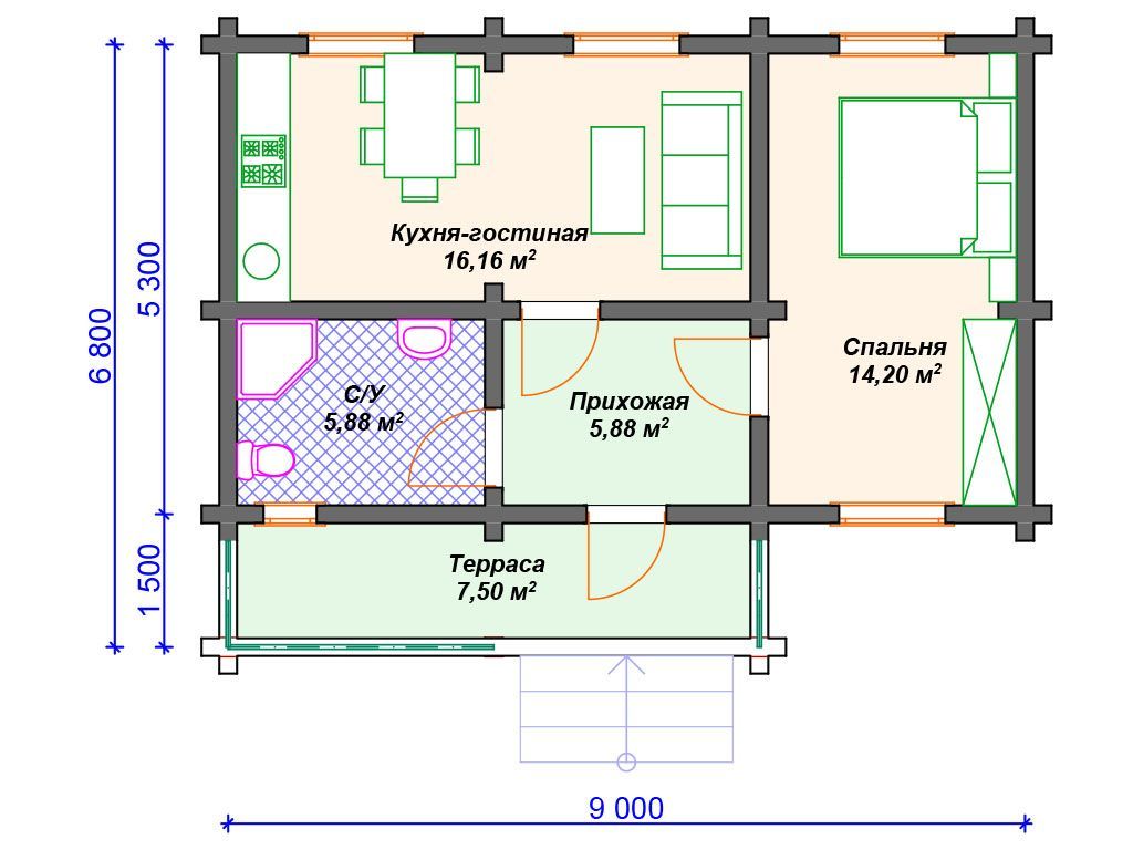 | Материал стен | оцилиндрованное бревно, профилированный брус, клееный брус |