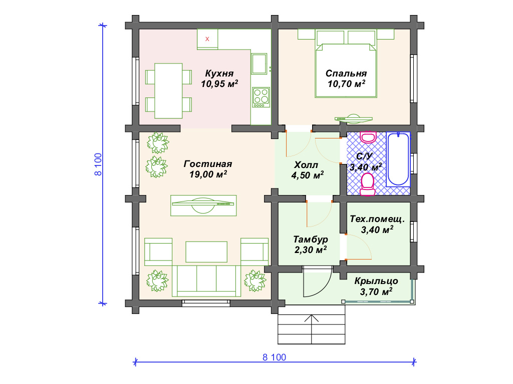 Проект одноэтажного деревянного дома S4-58 (ДС-141)