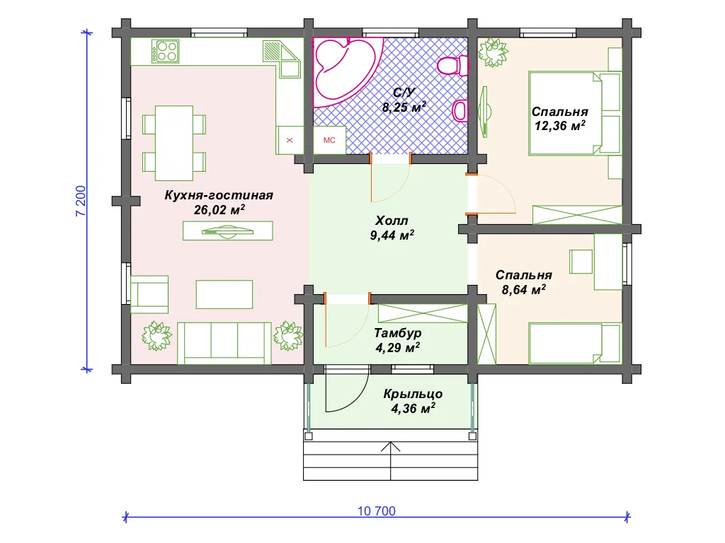 | Материал стен | оцилиндрованное бревно, профилированный брус, клееный брус |