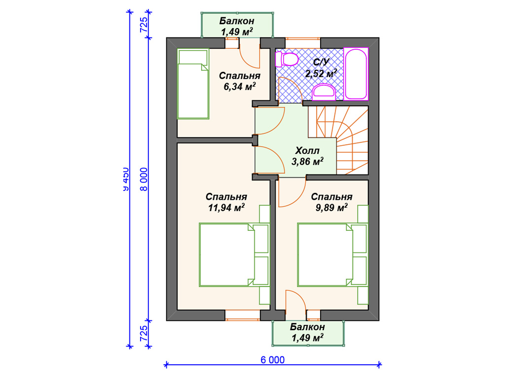 Проект дома с мансардой и 3 спальнями S4-75 (К-125)