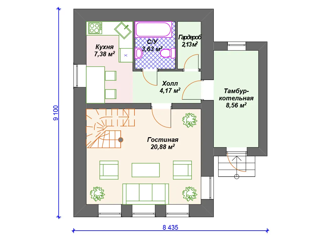 | Возможный материал кровли | металлочерепица, гибкая черепица, керамическая черепица, композитная черепица, цементно-песчаная черепица, фальцевая кровля |
