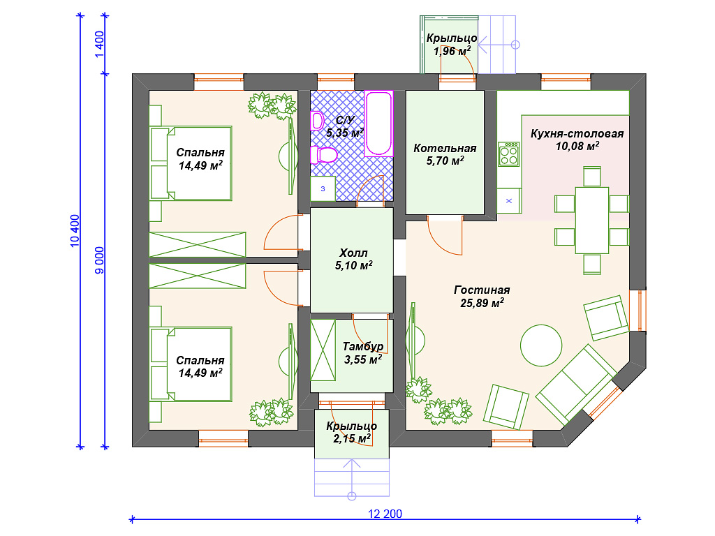 S4-89 (К-287). Данный проект представляет из себя одноэтажный дом сравнительно небольших размеров, что делает его достаточно экономичным, но при этом не лишенным всех базовых условий для комфортной жизни.