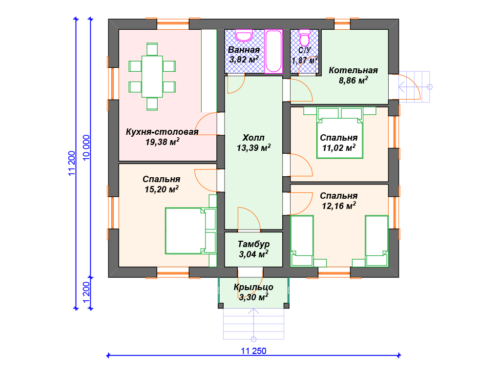 Проект одноэтажного дома с 3 спальнями S4-92 (К-161)