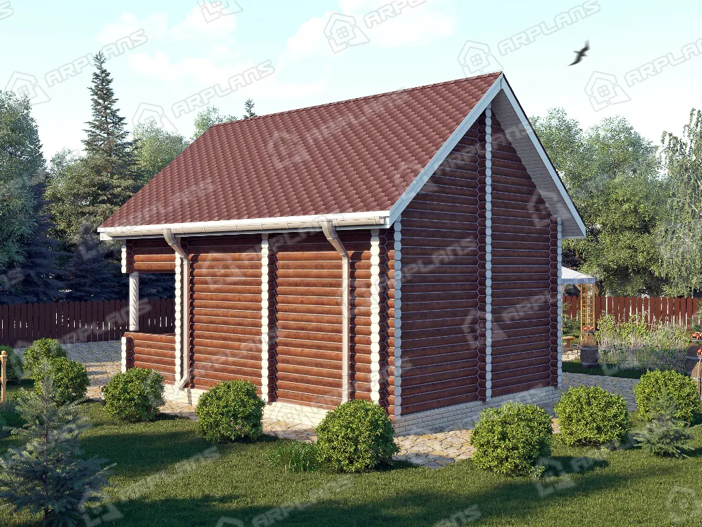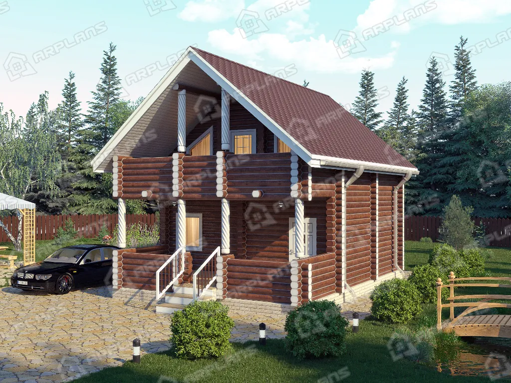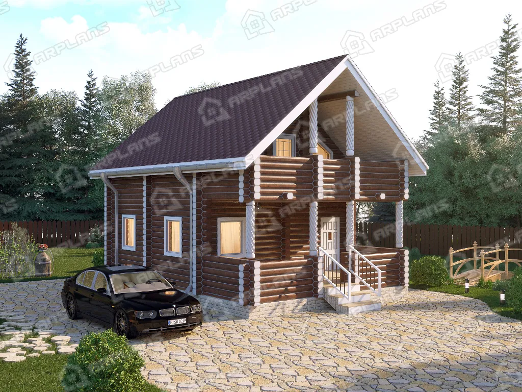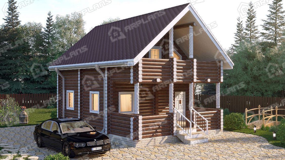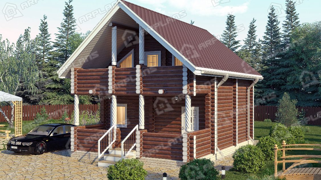 Проект деревянного дома из бревна 6 на 8 м с балконом и террасой S4-93 (ДО-014)