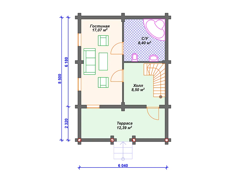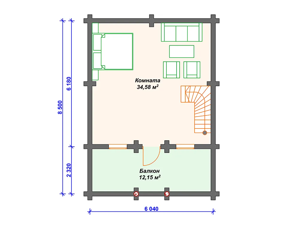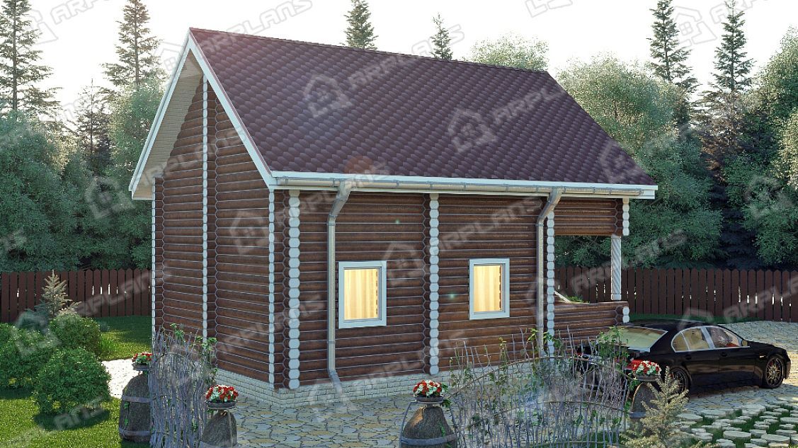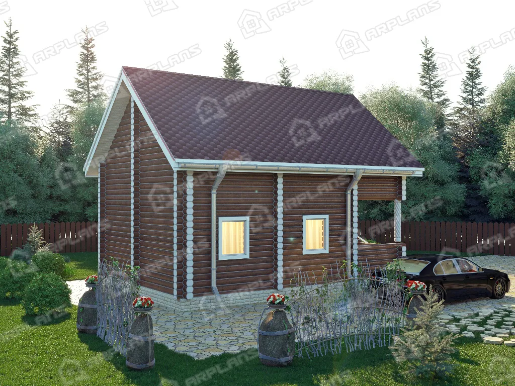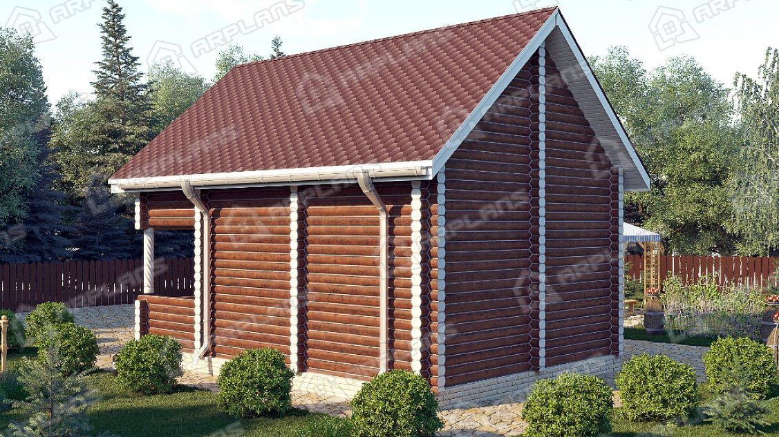 Проект деревянного дома из бревна 6 на 8 м с балконом и террасой S4-93 (ДО-014)
