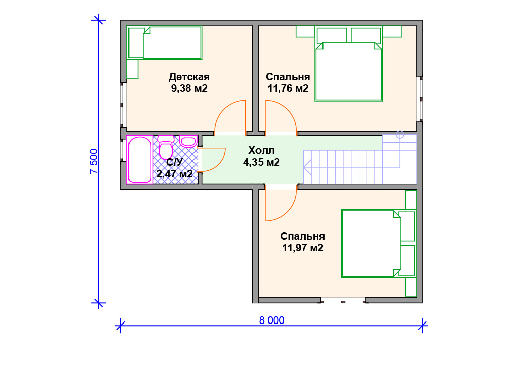 Проект каркасного дома с 3 спальнями S4-94 (И-069)