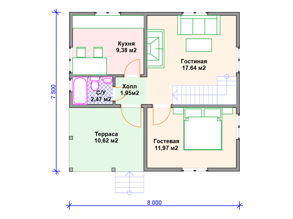 | Возможный материал кровли | металлочерепица, гибкая черепица, керамическая черепица, композитная черепица, цементно-песчаная черепица, фальцевая кровля |