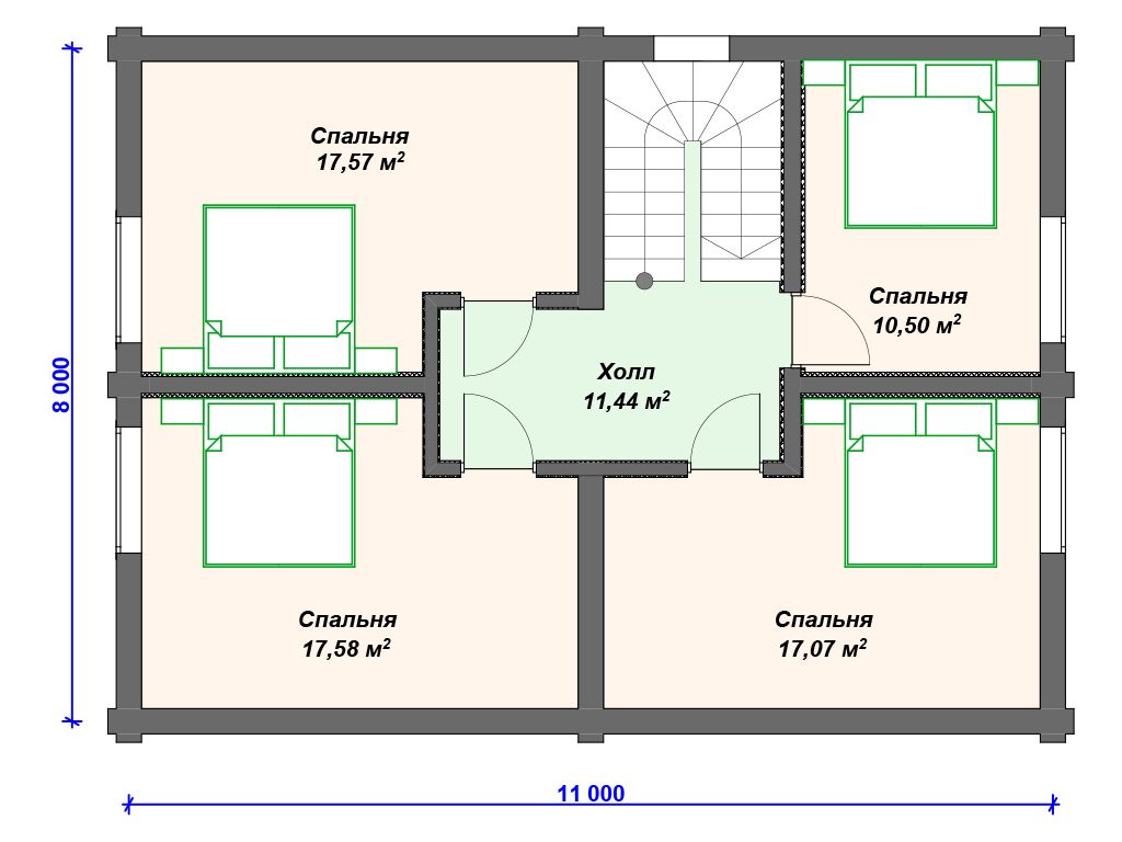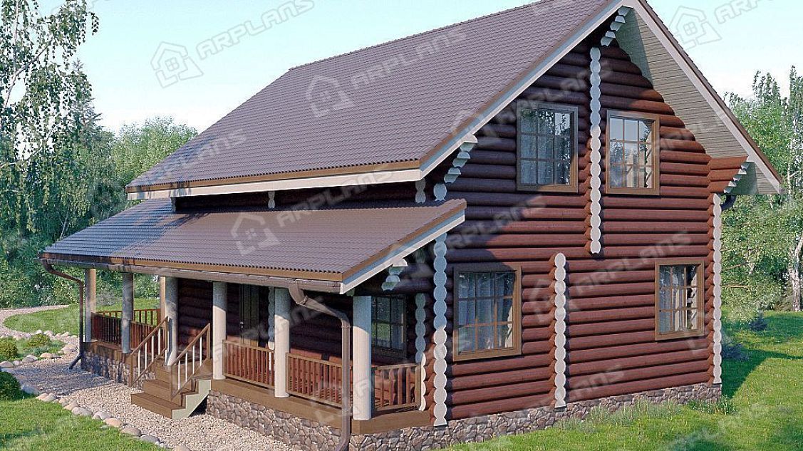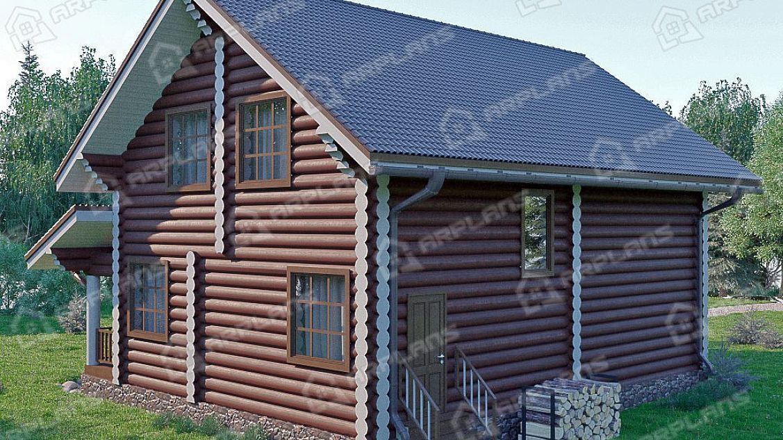 Проект деревянного дома из бревна 10 на 10 м с 3 спальнями и террасой S4-98 (ДО-123)
