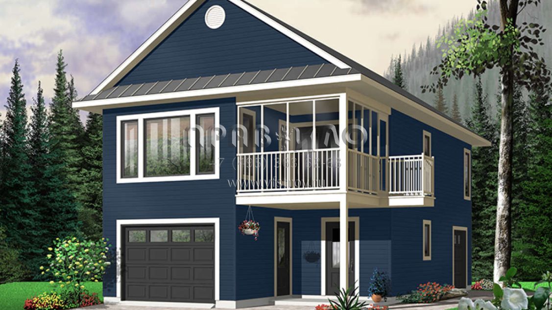 Проект двухэтажного дома с гаражом на две машины в стиле Ранчо S5-100 (034-00063)