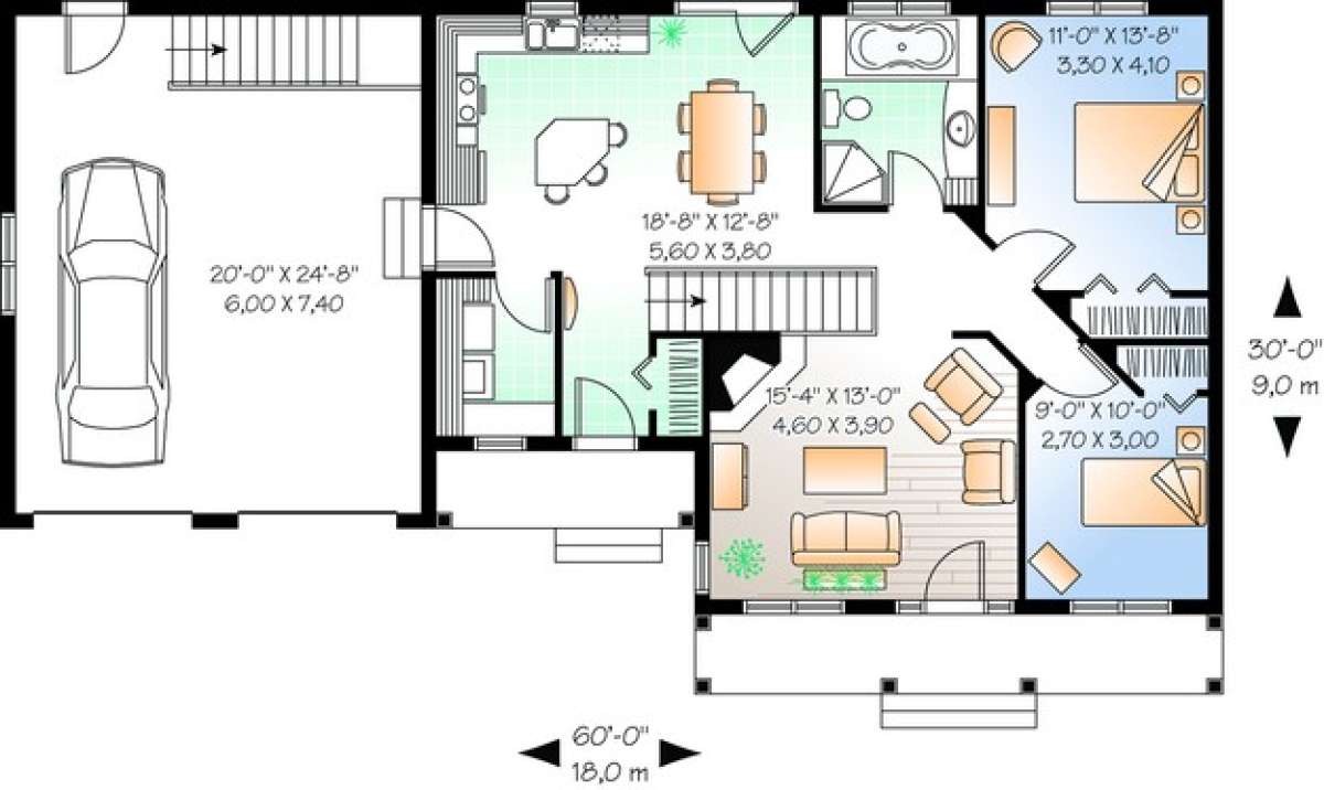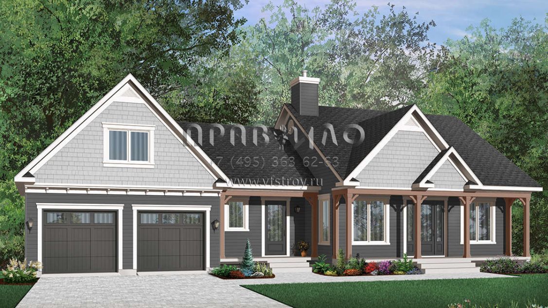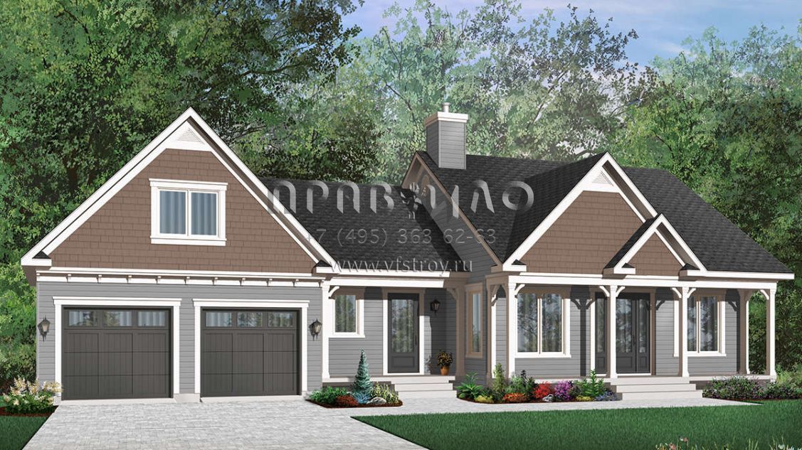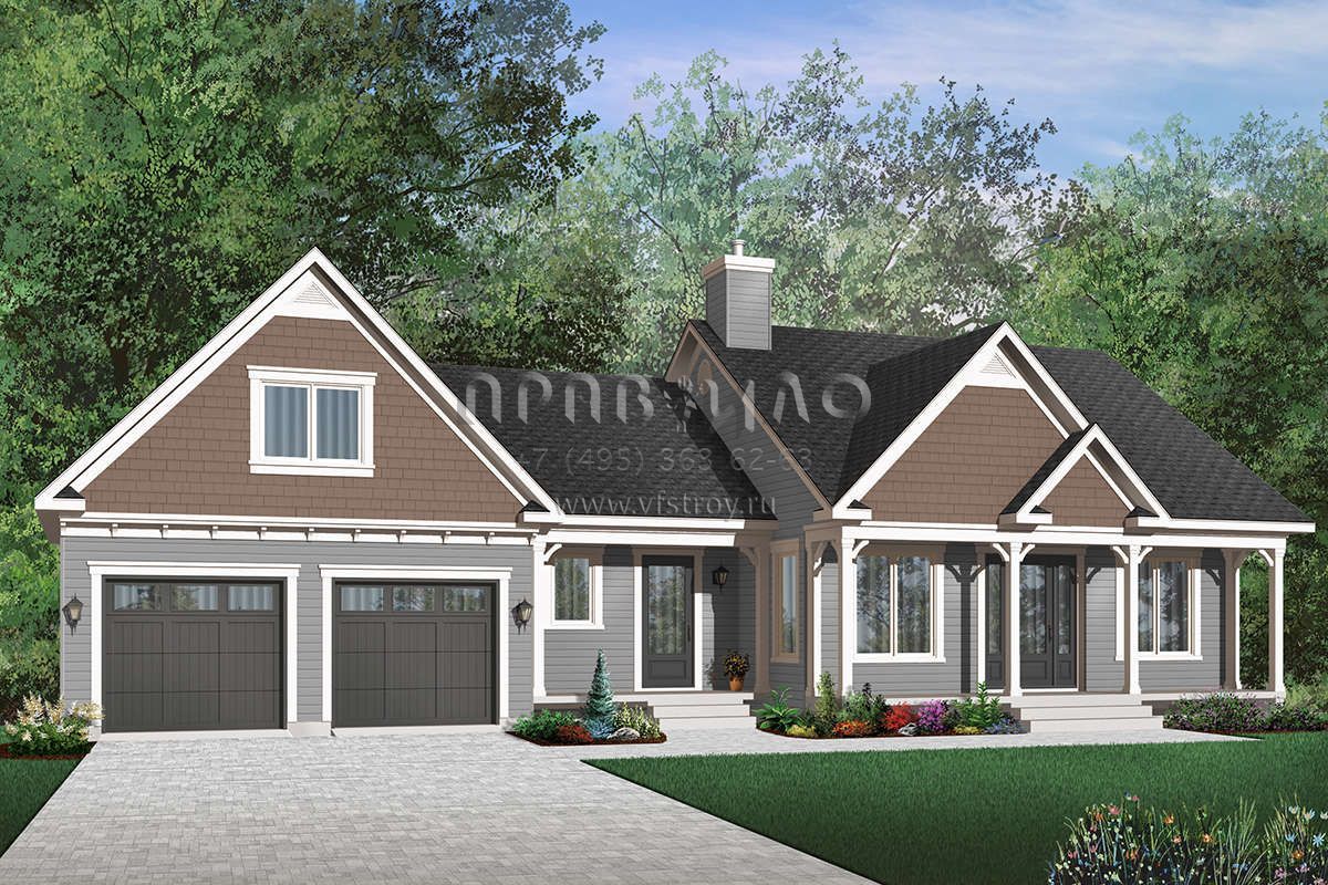 Проект одноэтажного дома с гаражом на две машины в стиле Ранчо S5-100 (034-00650)