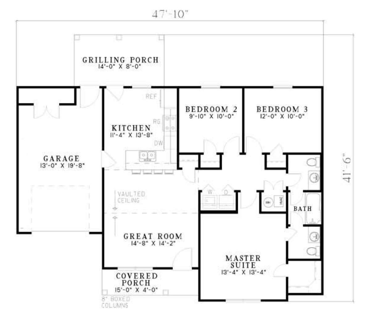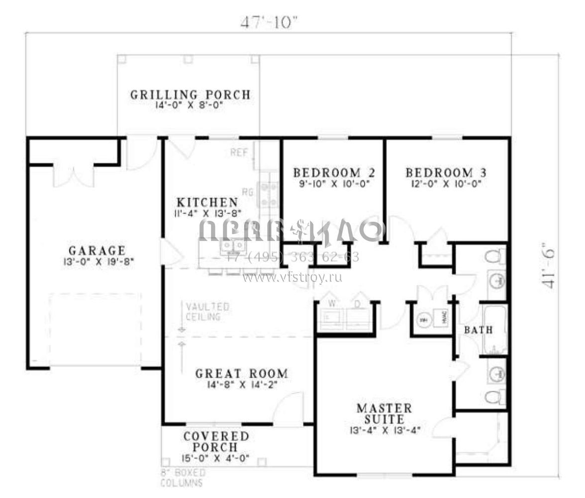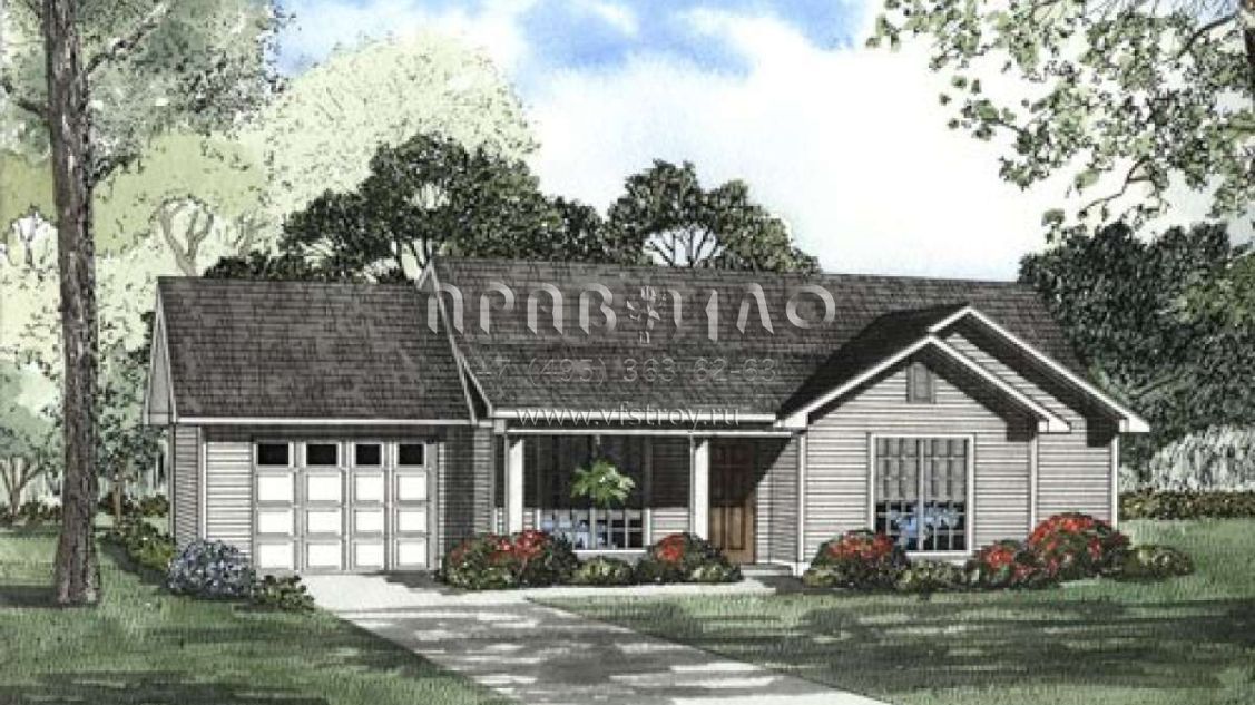 Проект одноэтажного дома с гаражом на одну машину в стиле Ранчо S5-100 (110-00425)