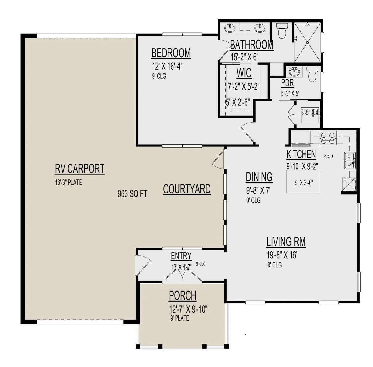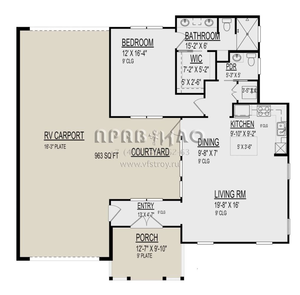 Проект одноэтажного дома с гаражом на одну машину в стиле Ранчо S5-100 (9300-00034)