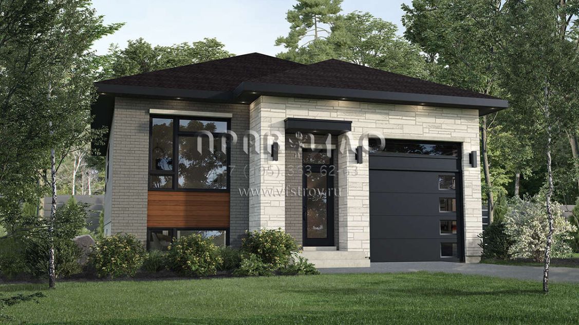 Проект одноэтажного дома с гаражом на одну машину в современном стиле S5-101 (6146-00495)