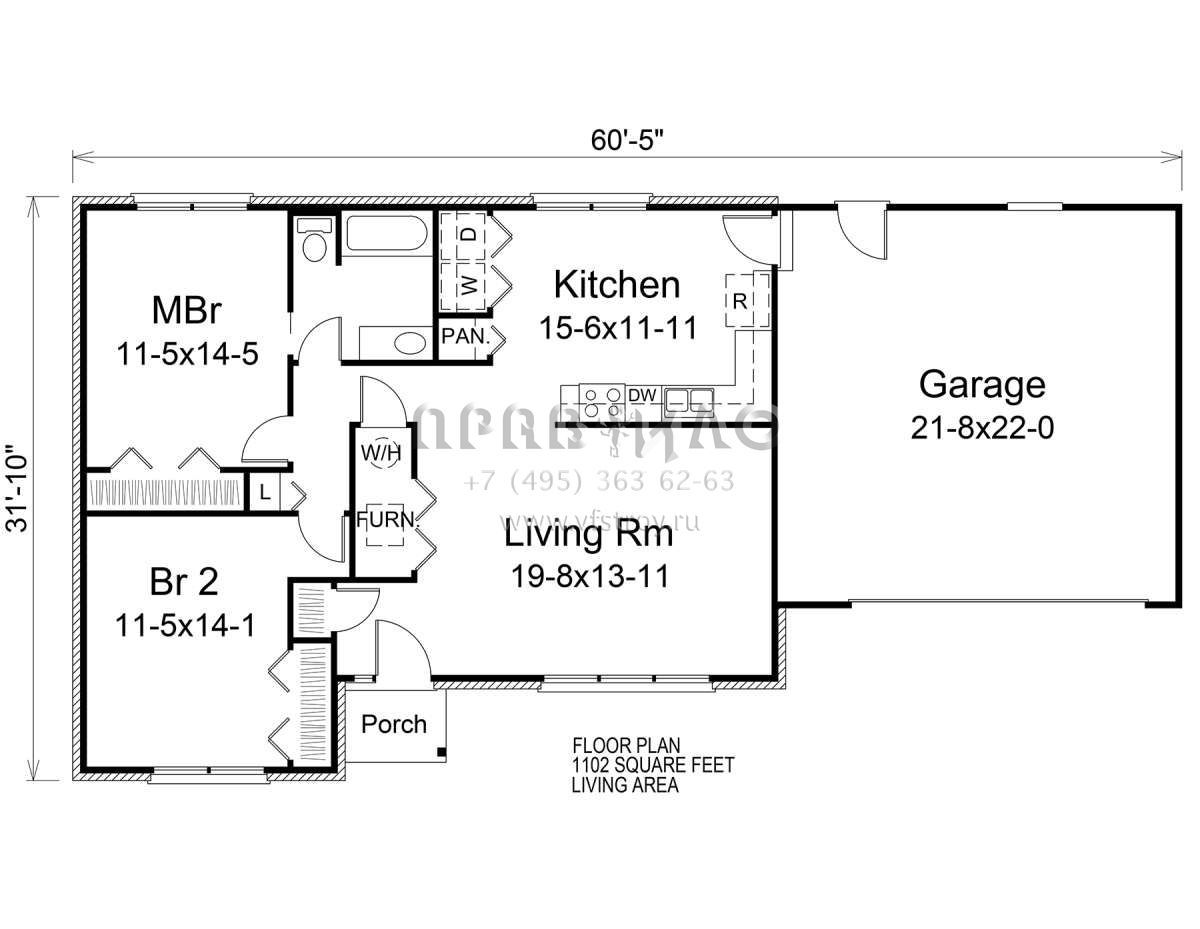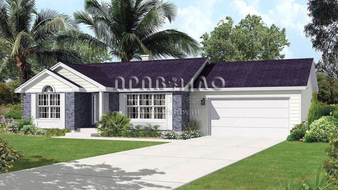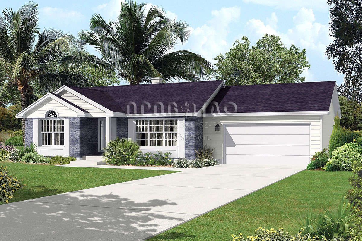 Проект одноэтажного дома с гаражом на две машины в стиле Ранчо S5-102 (5633-00389)