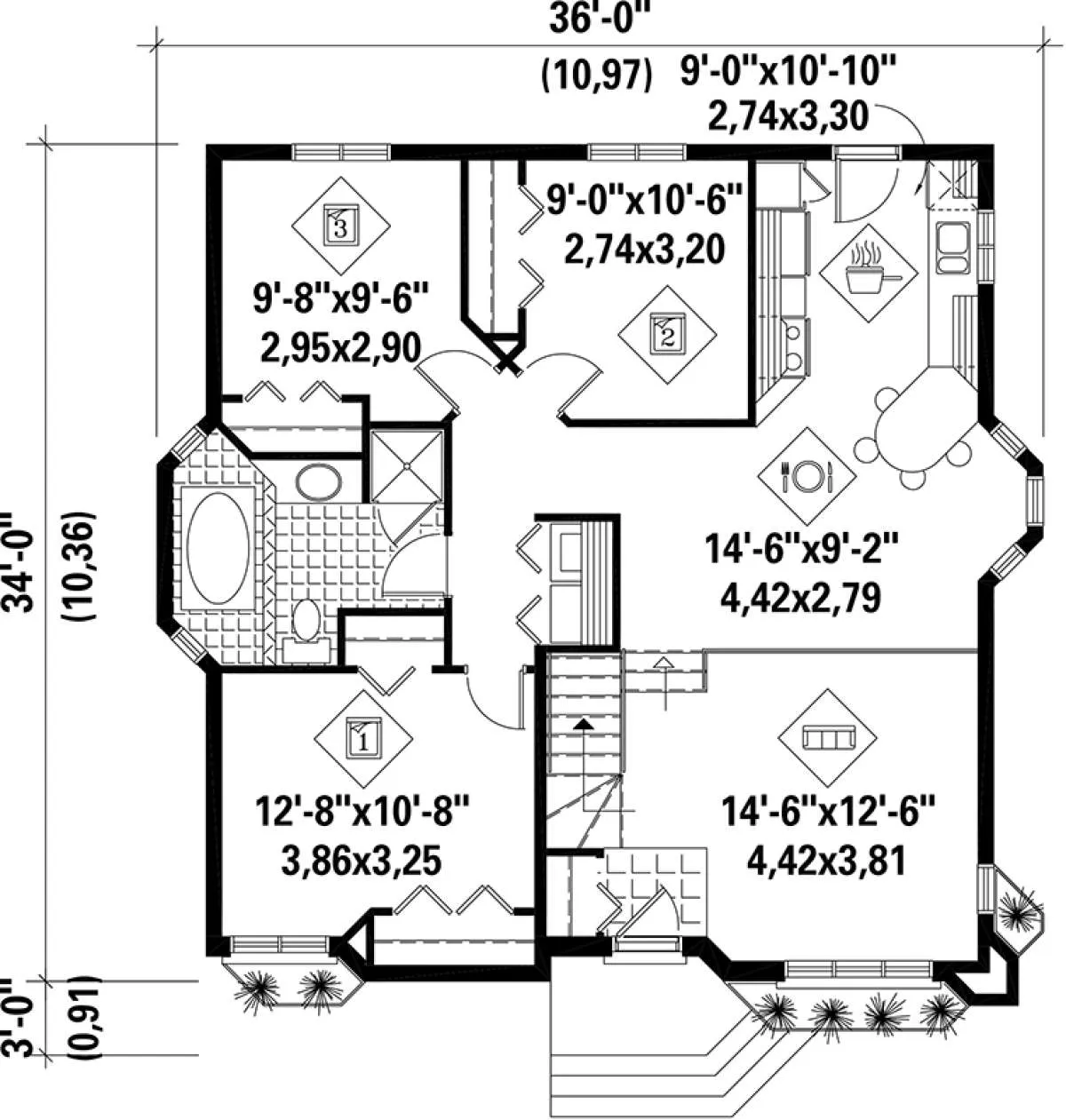 S5-102 (6146-00122) Это иностранный проект, для которого требуется адаптация под нормы, действующие в Российской Федерации. Вы видите проект дома в стиле Ранчо. В этом доме сочетаются черты сельской постройки и аскетичность лофта. Внутри жильцы смогут проводить время с максимальным комфортом. Обратим внимание, что сейчас на планировках все размеры представлены в футах. Для перевода в метры вам необходимо значение в футах умножить на 0,3048.