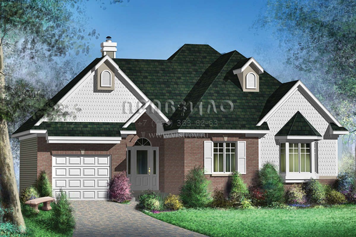 Проект одноэтажного дома с гаражом на одну машину в английском стиле S5-102 (6146-00306)