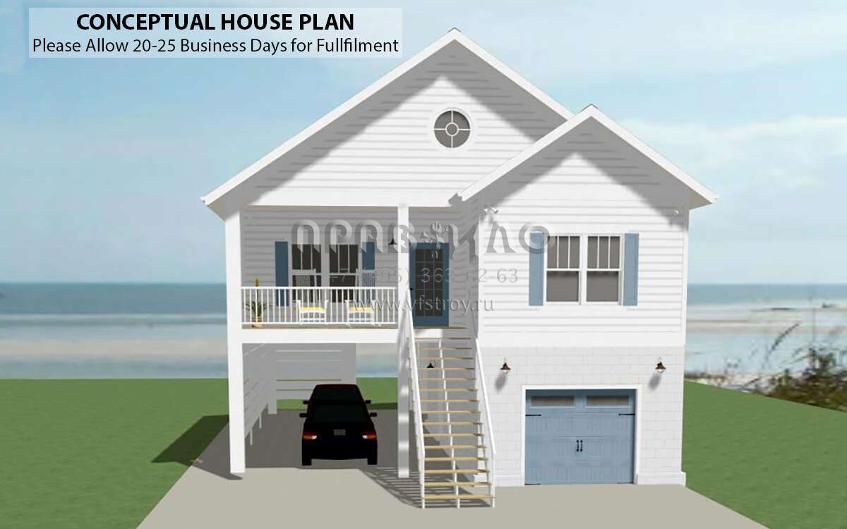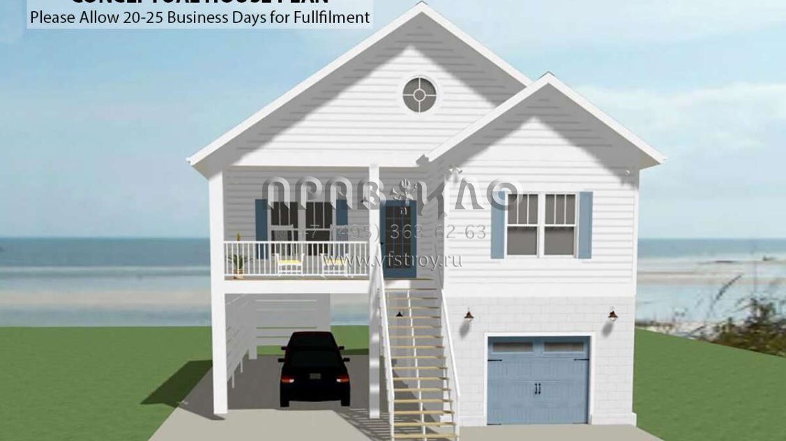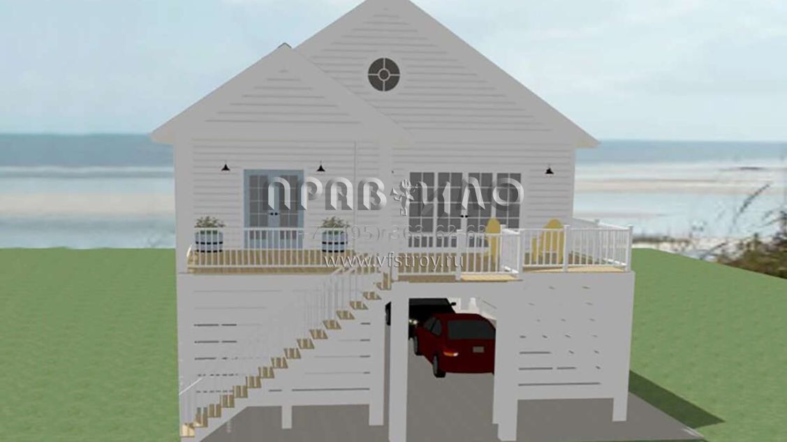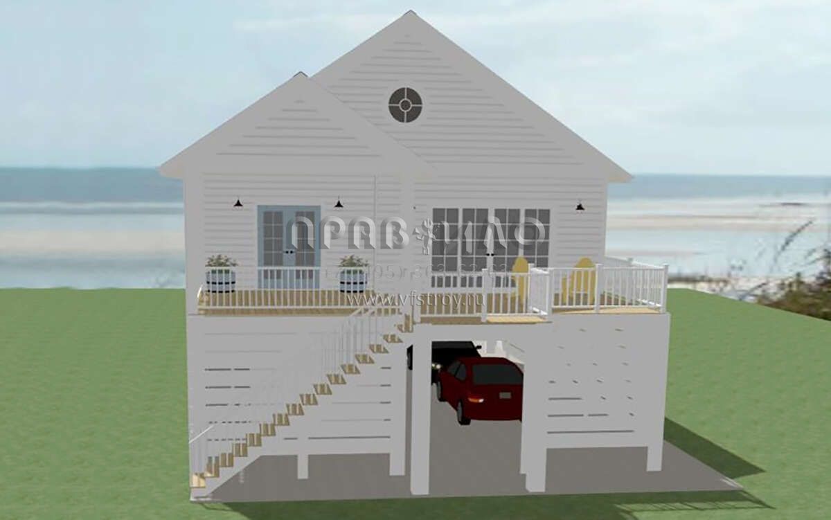 Проект двухэтажного дома с гаражом на одну машину в прибрежном стиле S5-102 (6849-00143)