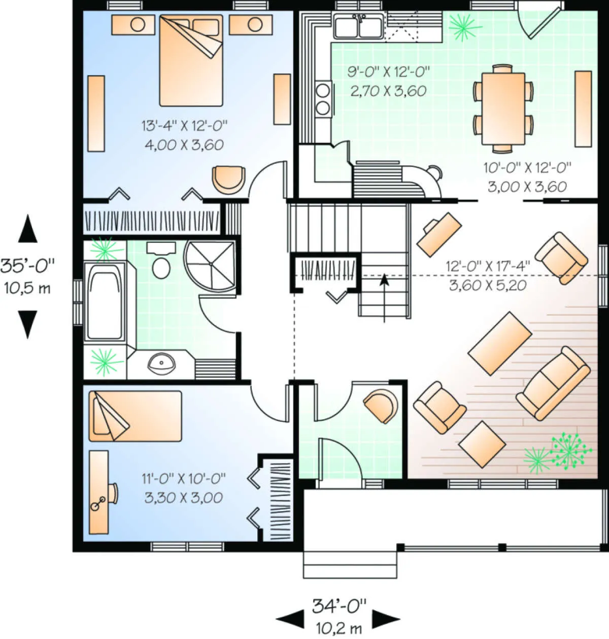 S5-103 (034-00115) Это иностранный проект, для которого требуется адаптация под нормы, действующие в Российской Федерации. Вы видите проект дома в стиле Ранчо. В этом доме сочетаются черты сельской постройки и аскетичность лофта. Внутри жильцы смогут проводить время с максимальным комфортом. Обратим внимание, что сейчас на планировках все размеры представлены в футах. Для перевода в метры вам необходимо значение в футах умножить на 0,3048.