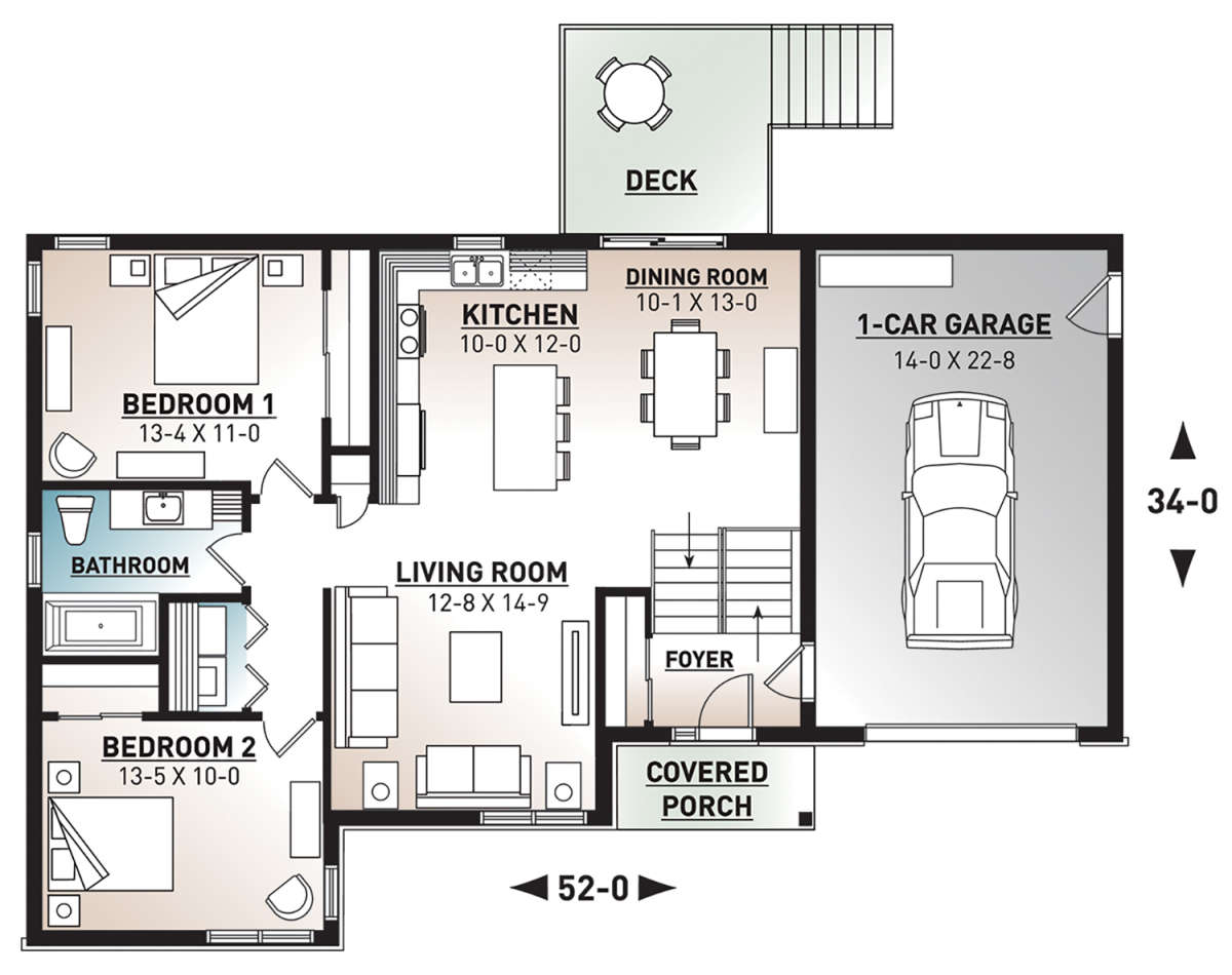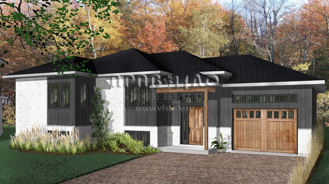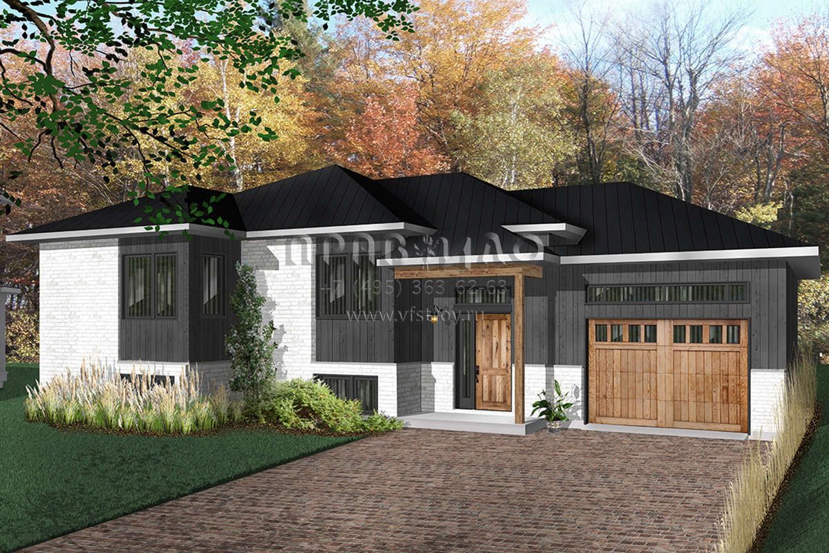 Проект одноэтажного дома с гаражом на одну машину в современном стиле S5-103 (034-01097)