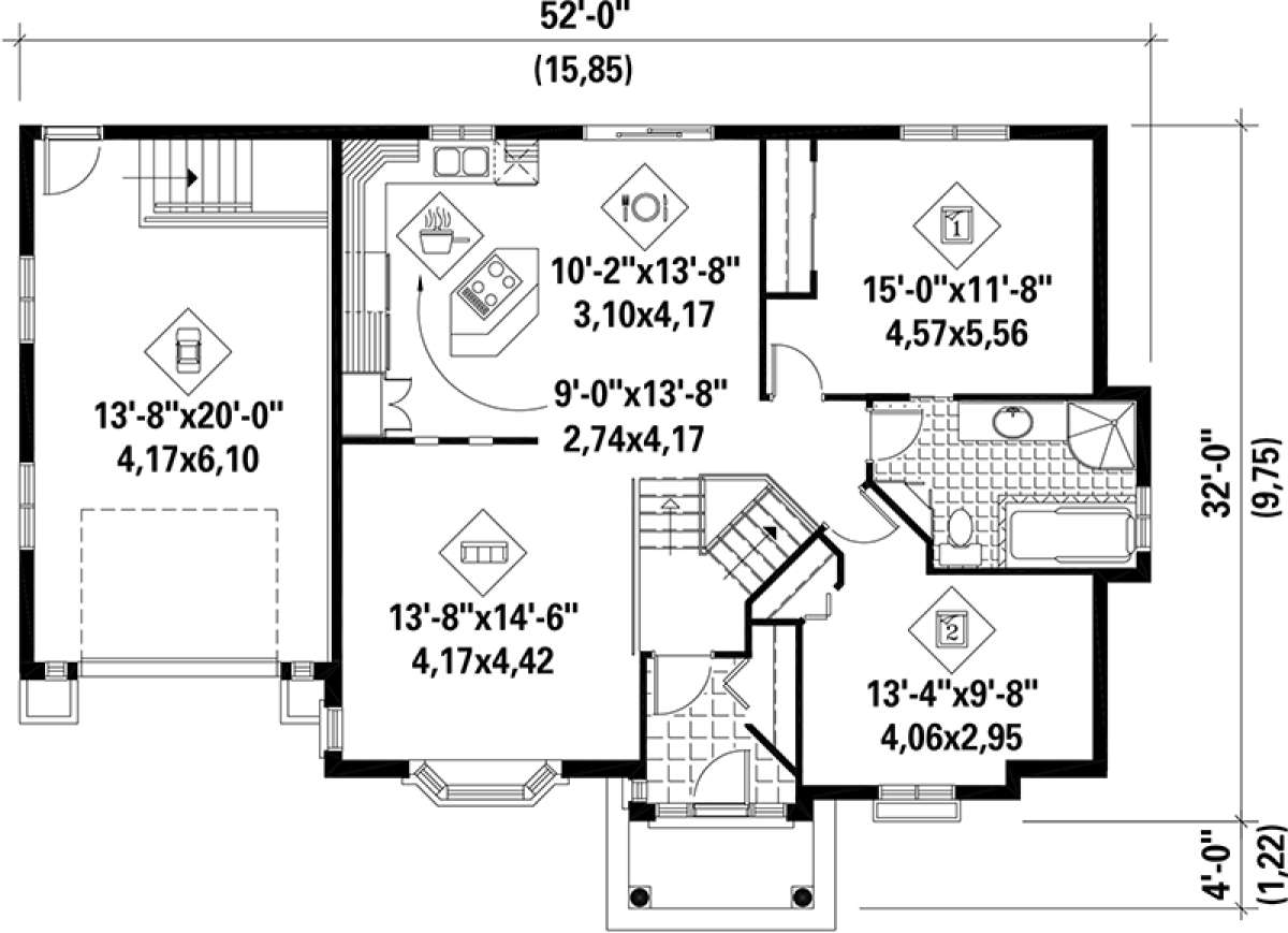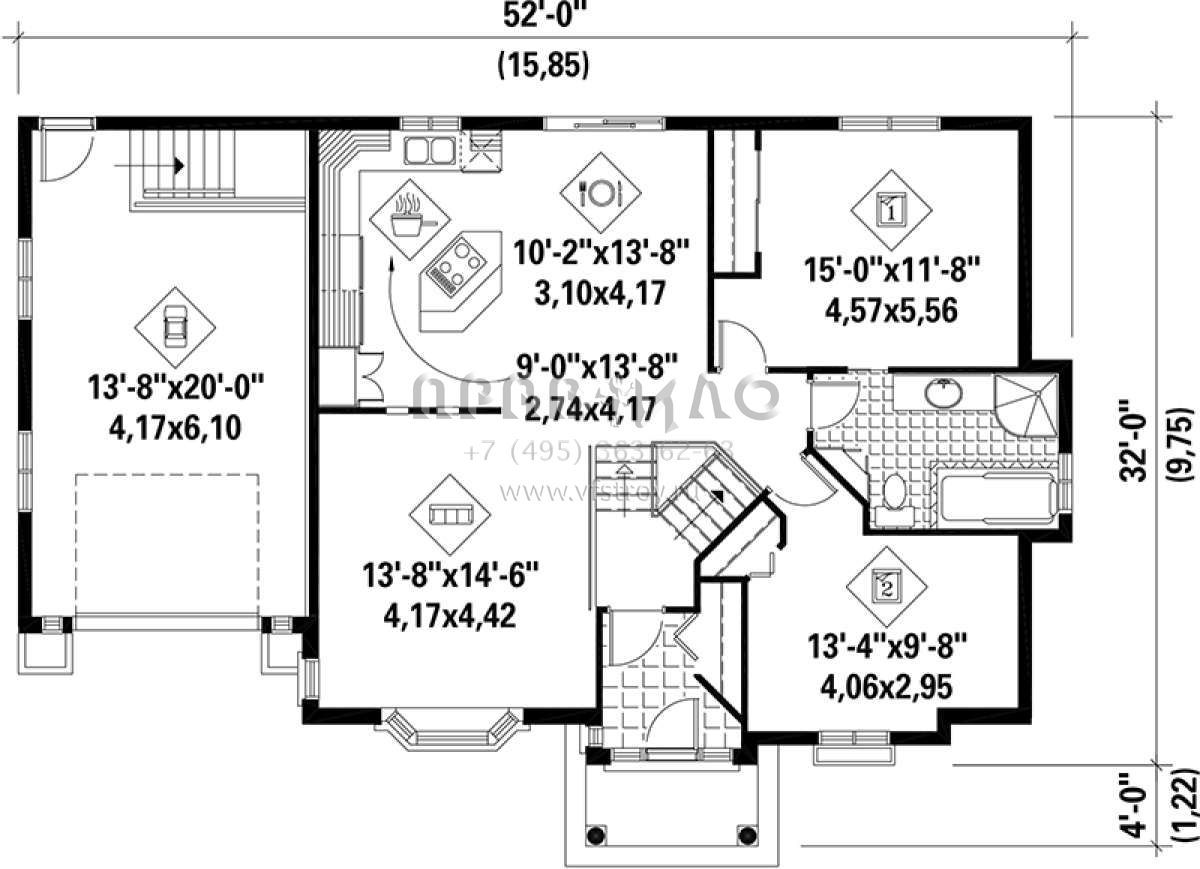 S5-104 (6146-00106) Это иностранный проект, для которого требуется адаптация под нормы, действующие в Российской Федерации. Вы видите проект дома в современном стиле. В этом доме сочетаются черты сельской постройки и аскетичность лофта. Внутри жильцы смогут проводить время с максимальным комфортом. Обратим внимание, что сейчас на планировках все размеры представлены в футах. Для перевода в метры вам необходимо значение в футах умножить на 0,3048.