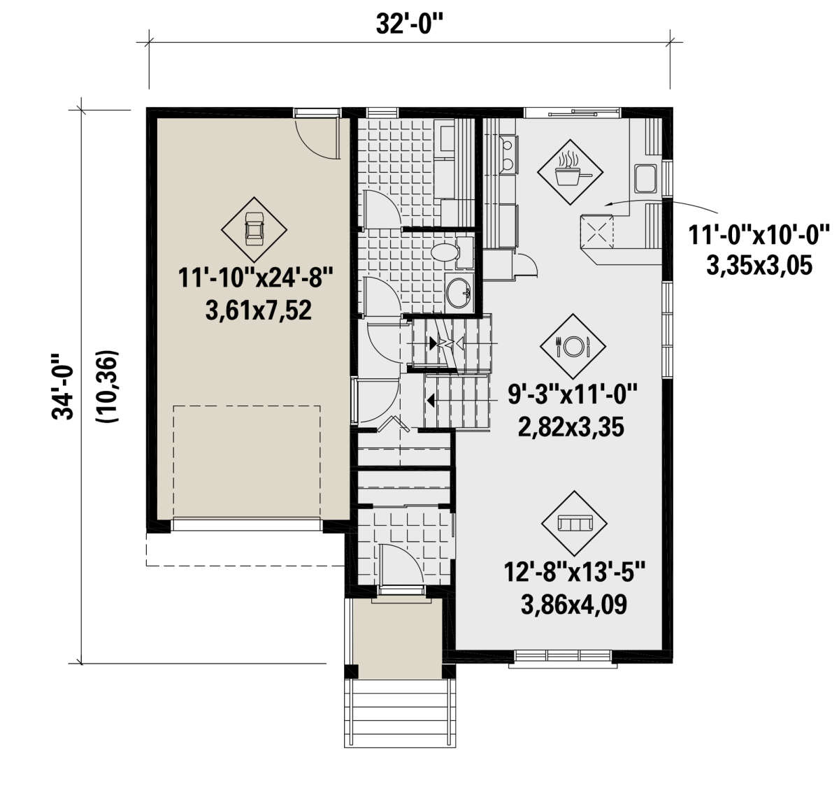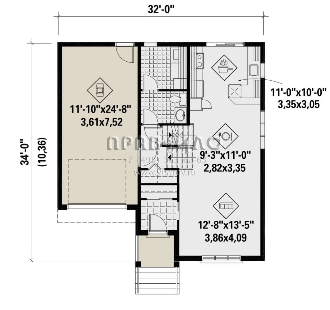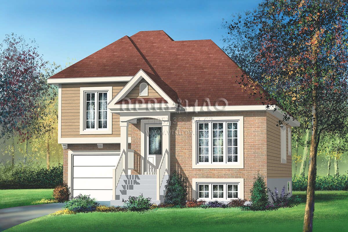 Проект одноэтажного дома с гаражом на одну машину в стиле Ранчо S5-105 (6146-00475)
