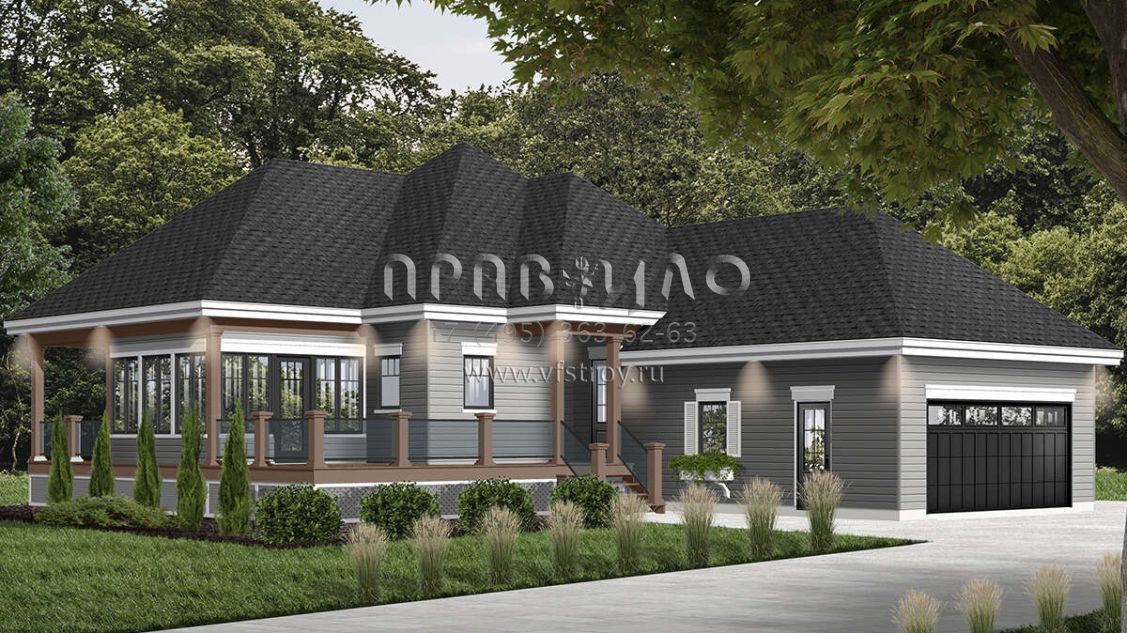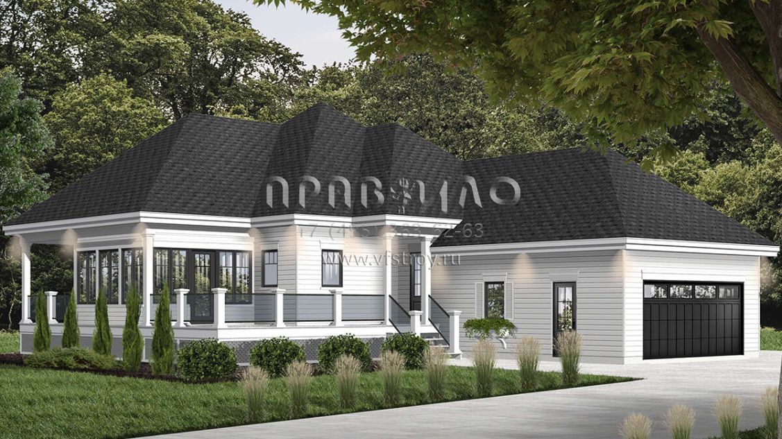 Проект одноэтажного дома с гаражом на две машины в стиле Ранчо S5-106 (034-01044)