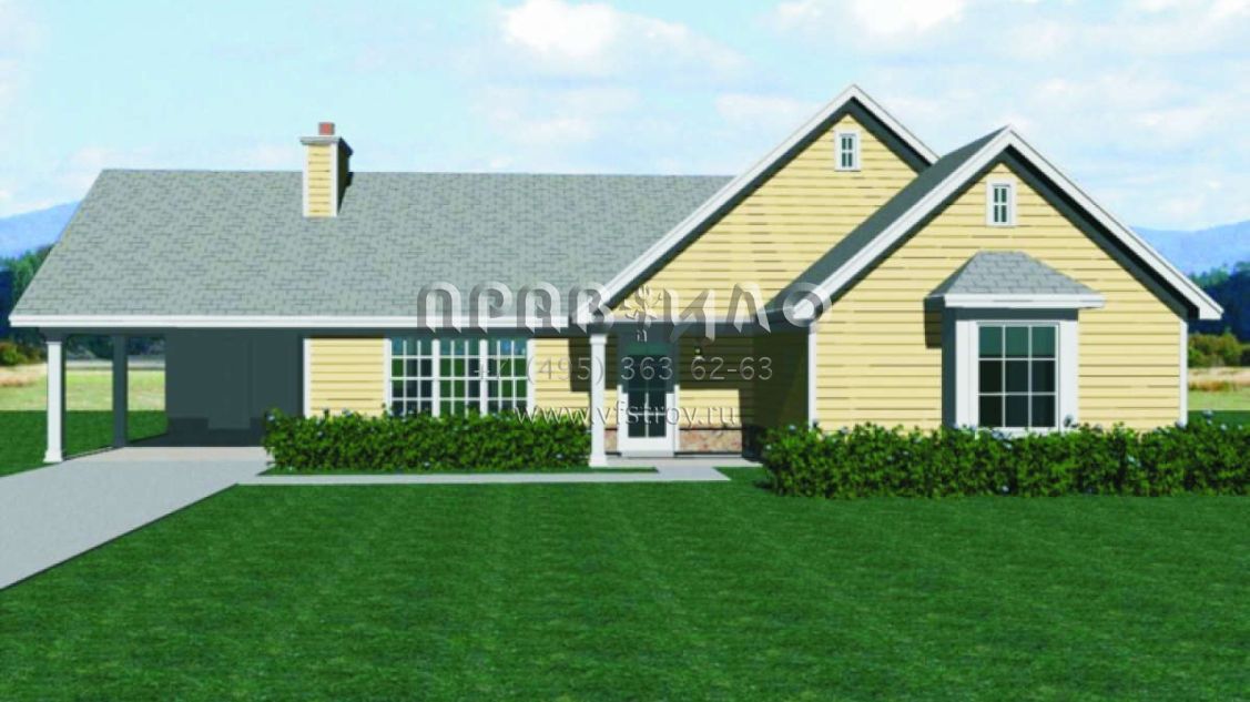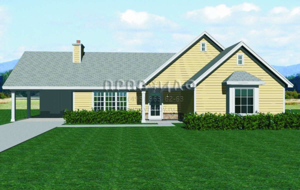 Проект одноэтажного дома с гаражом на одну машину в стиле Ранчо S5-106 (053-00469)