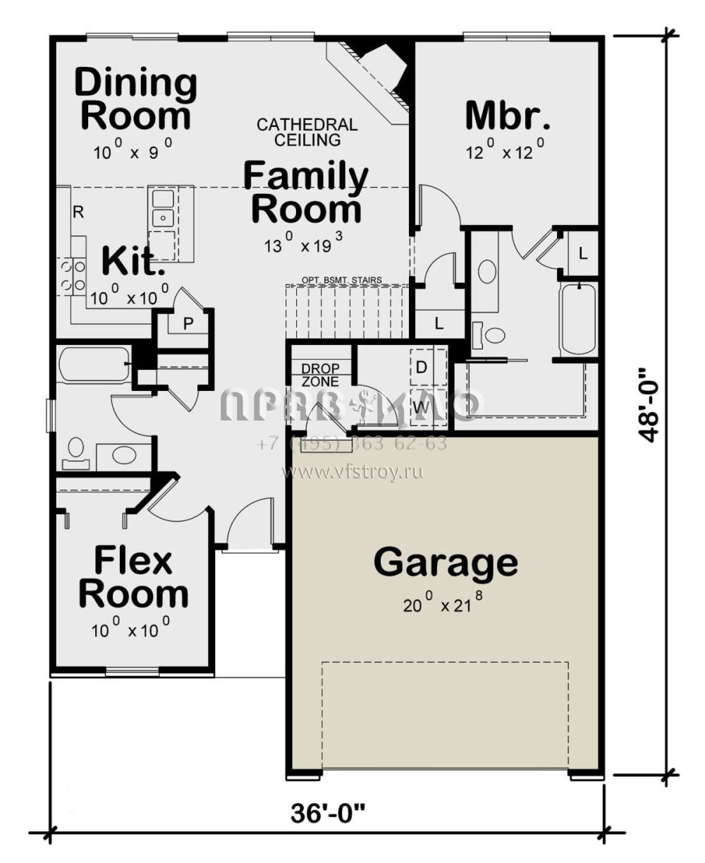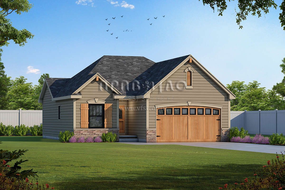 Проект одноэтажного дома с гаражом на две машины в стиле Ранчо S5-106 (402-01674)