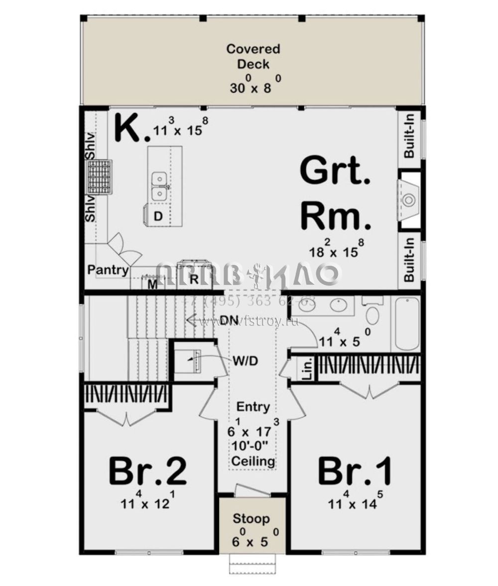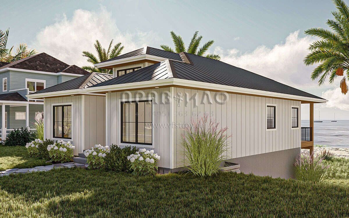S5-106 (963-00836) Это иностранный проект, для которого требуется адаптация под нормы, действующие в Российской Федерации. Вы видите проект дома в современном стиле. В этом доме сочетаются черты сельской постройки и аскетичность лофта. Внутри жильцы смогут проводить время с максимальным комфортом. Обратим внимание, что сейчас на планировках все размеры представлены в футах. Для перевода в метры вам необходимо значение в футах умножить на 0,3048.