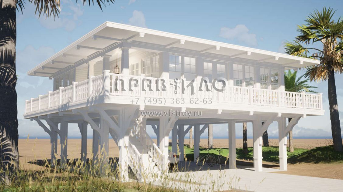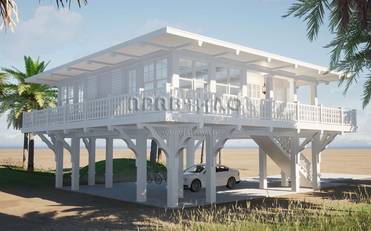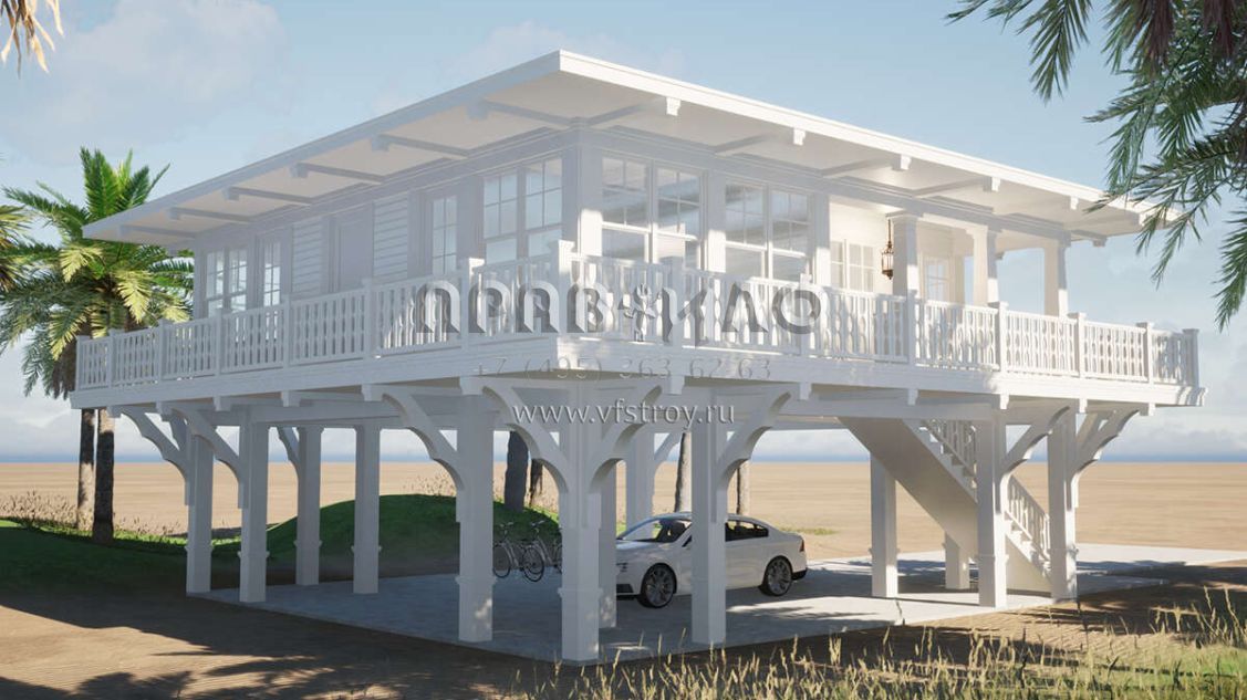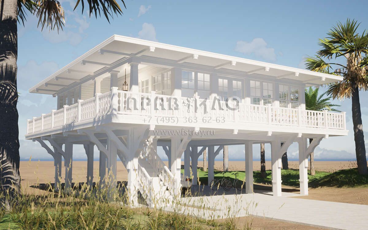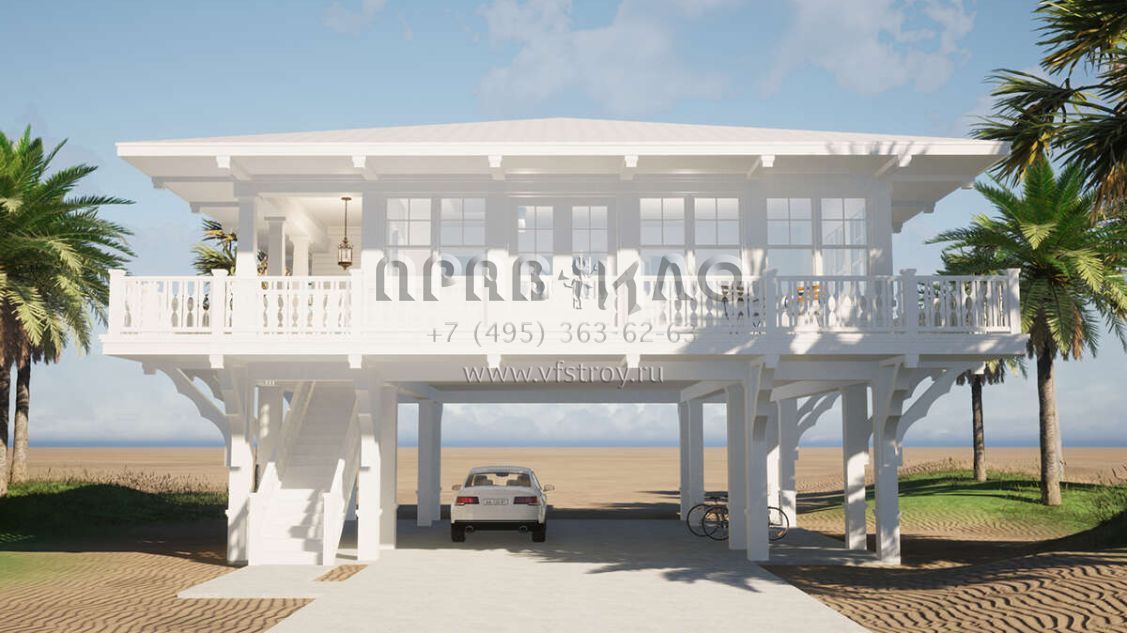 Проект двухэтажного дома с гаражом на две машины в прибрежном стиле S5-107 (028-00192)