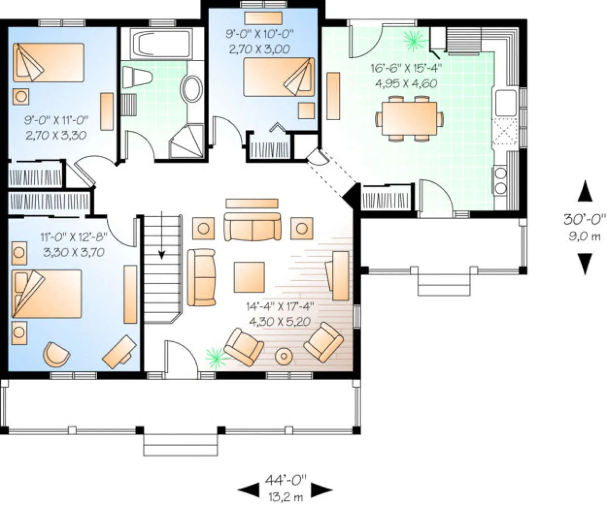 Проект одноэтажного дома без гаража в стиле Ранчо S5-107 (034-00001)