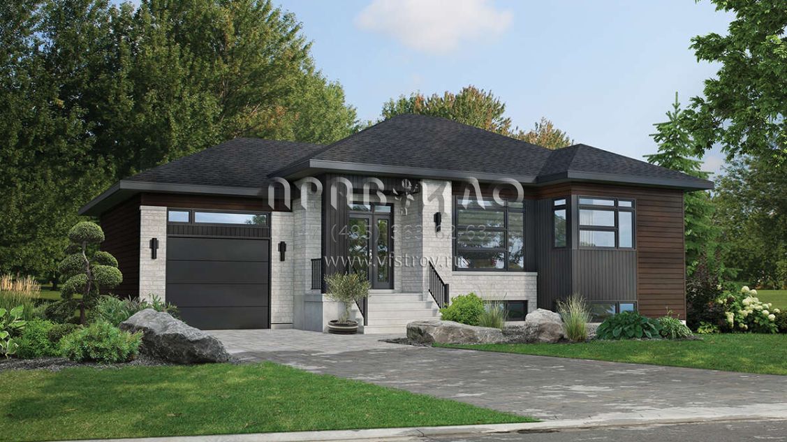 Проект одноэтажного дома с гаражом на одну машину в современном стиле S5-107 (6146-00479)
