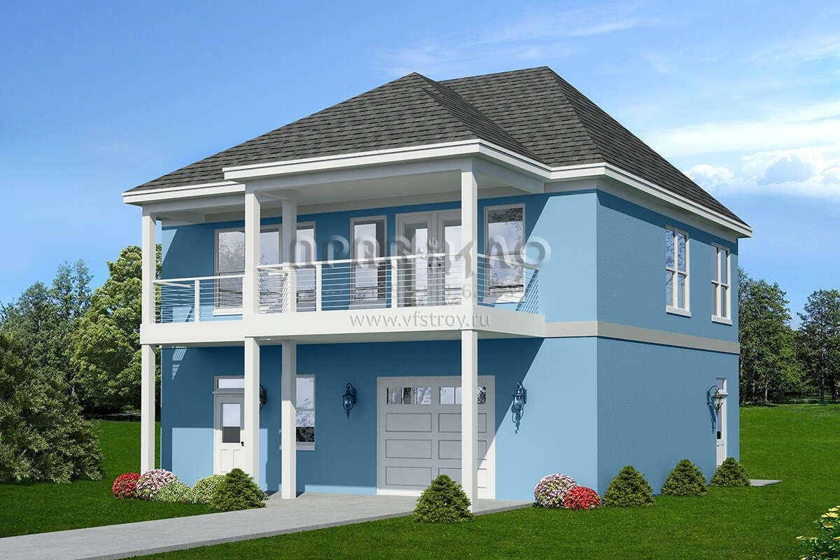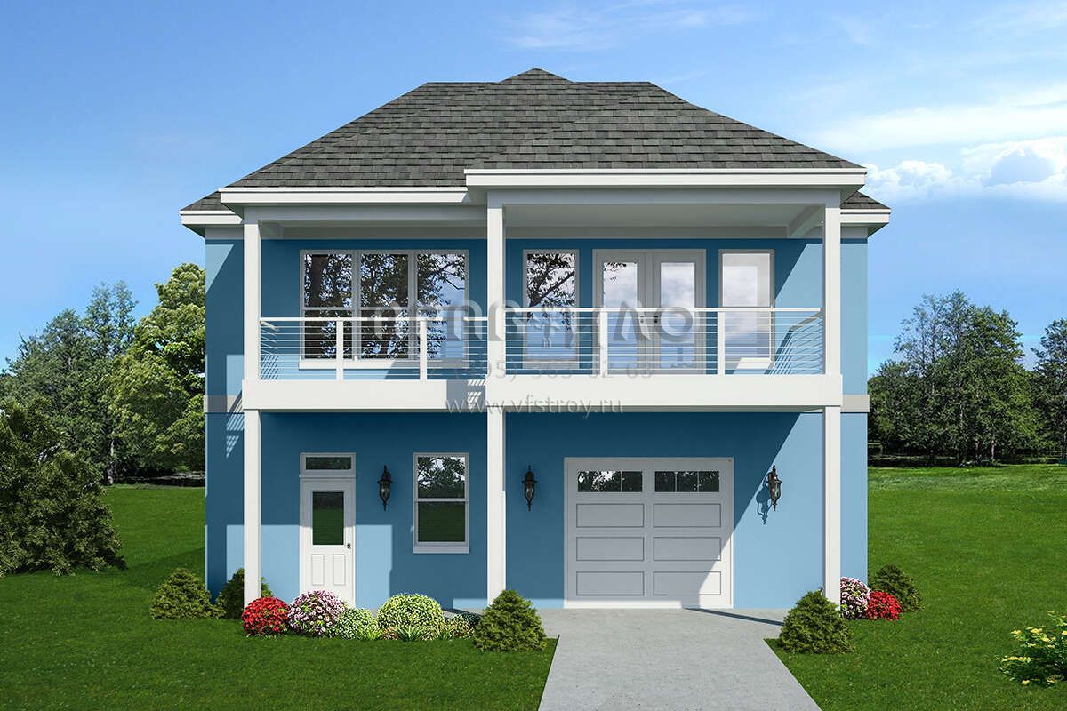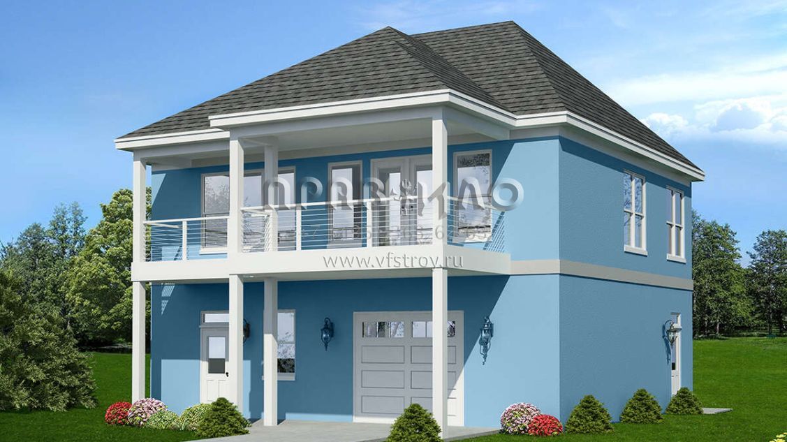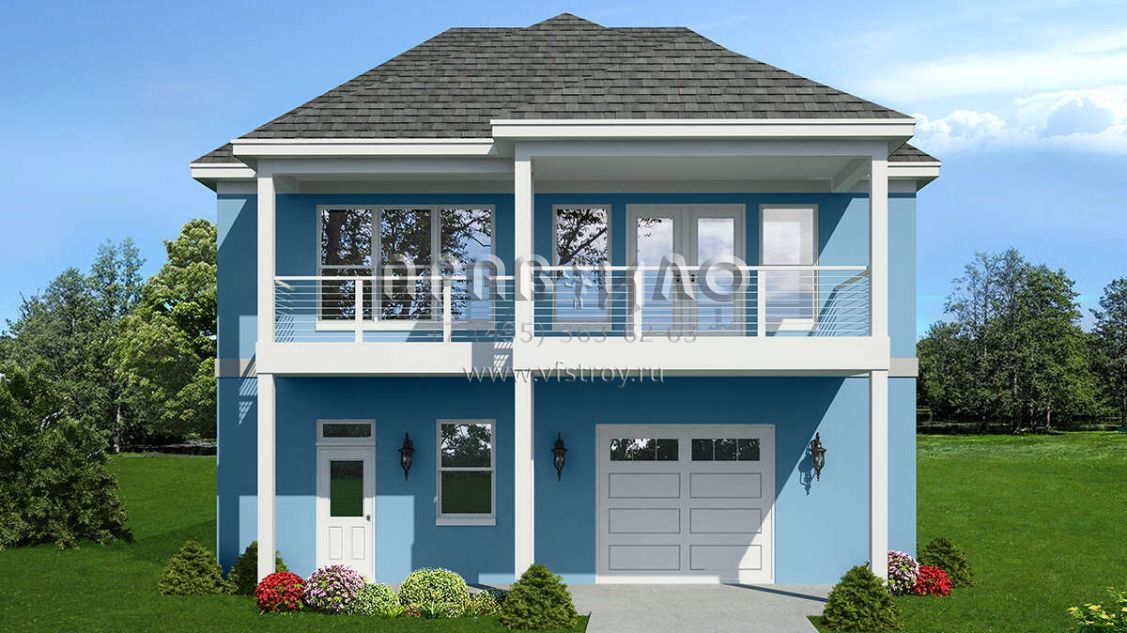 Проект двухэтажного дома с гаражом на две машины в прибрежном стиле S5-107 (940-00548)