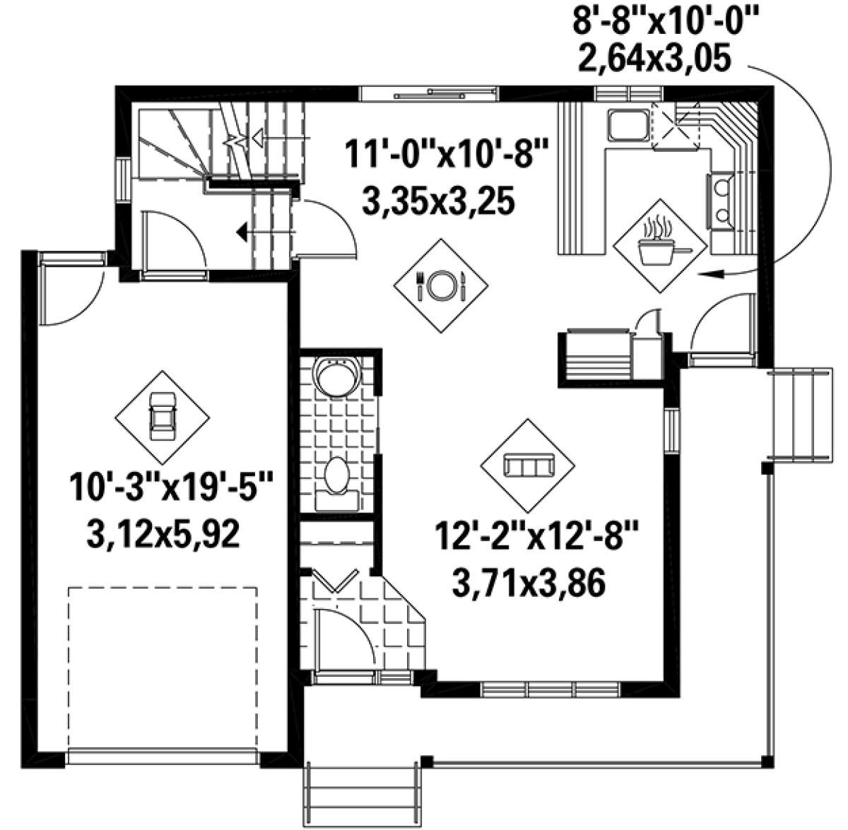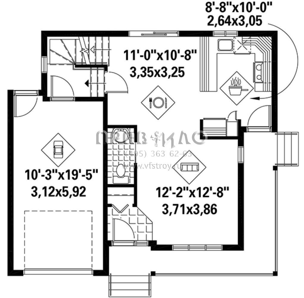 S5-108 (6146-00239) Это иностранный проект, для которого требуется адаптация под нормы, действующие в Российской Федерации. Вы видите проект дома в стиле Ранчо. В этом доме сочетаются черты сельской постройки и аскетичность лофта. Внутри жильцы смогут проводить время с максимальным комфортом. Обратим внимание, что сейчас на планировках все размеры представлены в футах. Для перевода в метры вам необходимо значение в футах умножить на 0,3048.