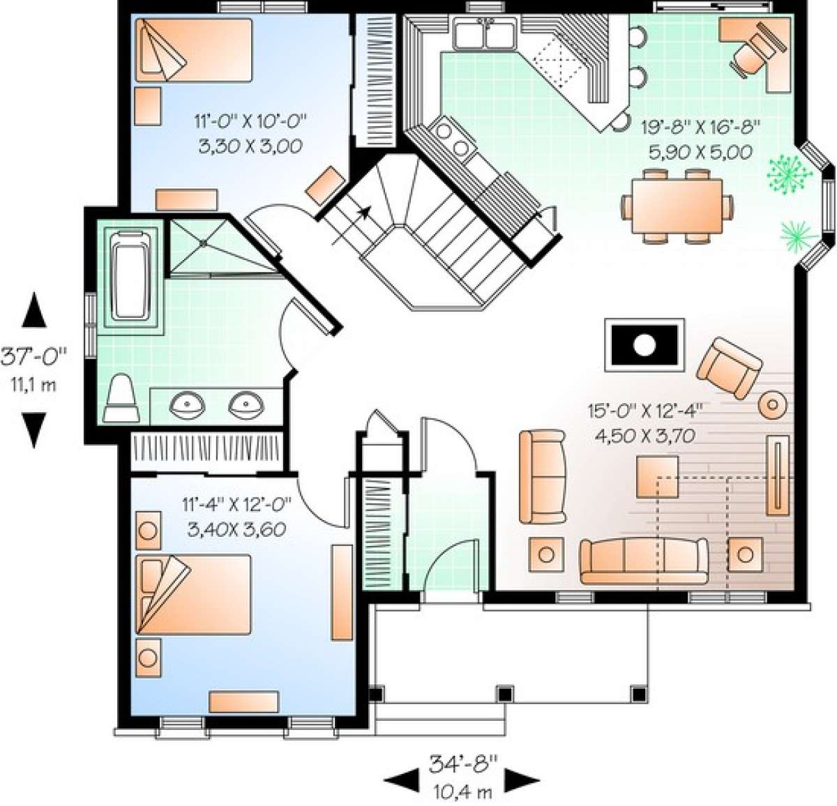 Проект одноэтажного дома без гаража в стиле Ранчо S5-109 (034-01001)