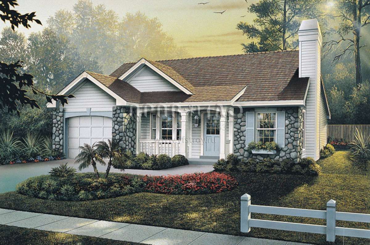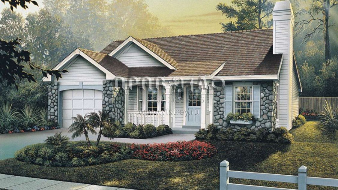 Проект одноэтажного дома с гаражом на одну машину в стиле Ранчо S5-109 (5633-00120)