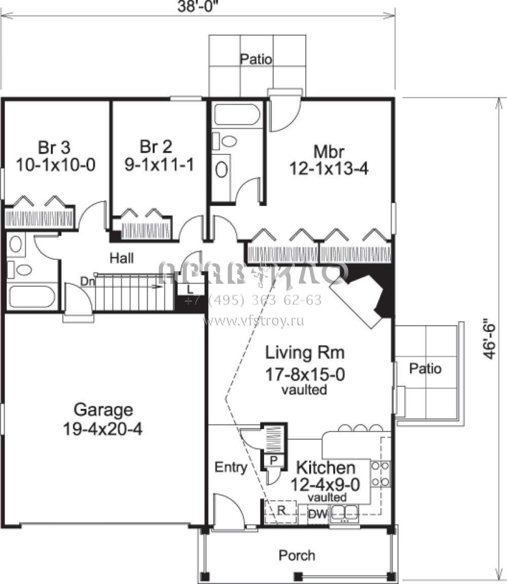 Проект одноэтажного дома с гаражом на две машины в стиле Ранчо S5-109 (5633-00185)