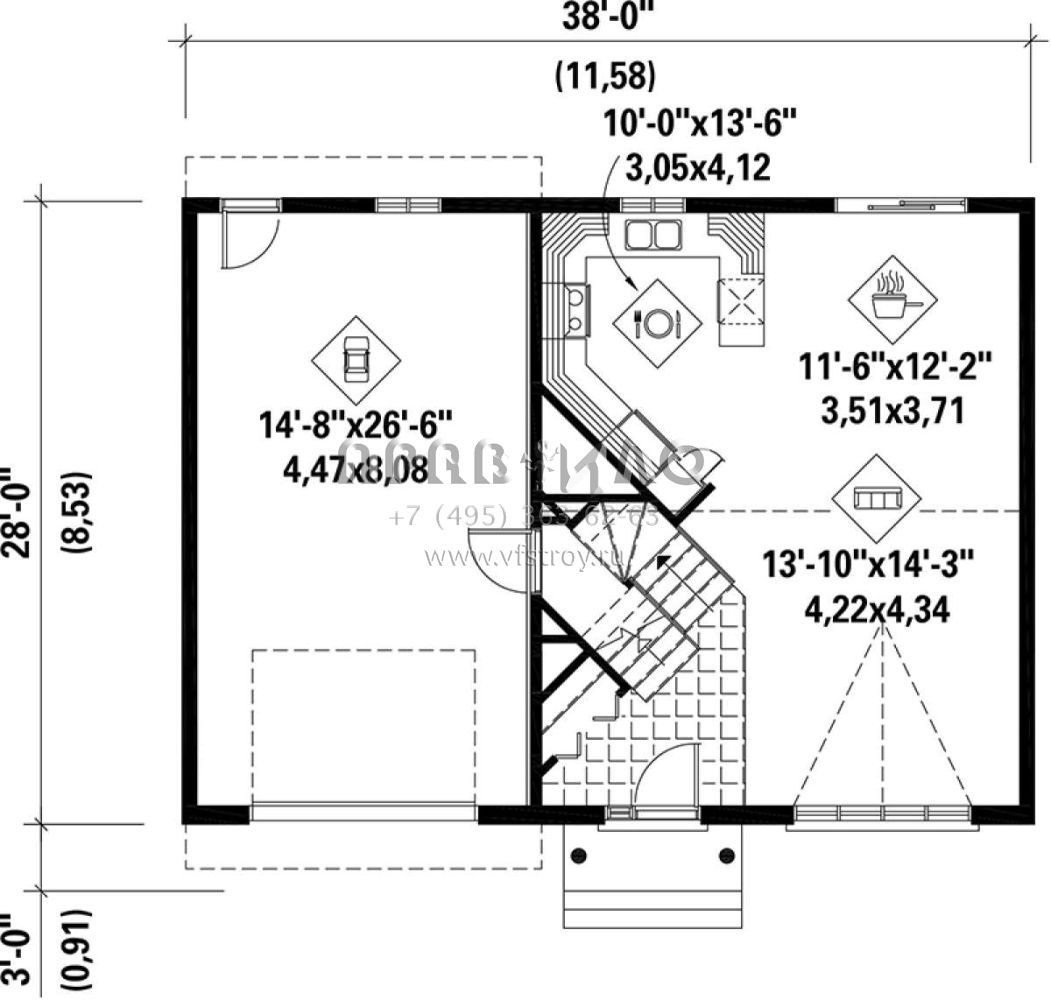 | Возможный материал кровли | металлочерепица, гибкая черепица, керамическая черепица, композитная черепица, цементно-песчаная черепица, фальцевая кровля |