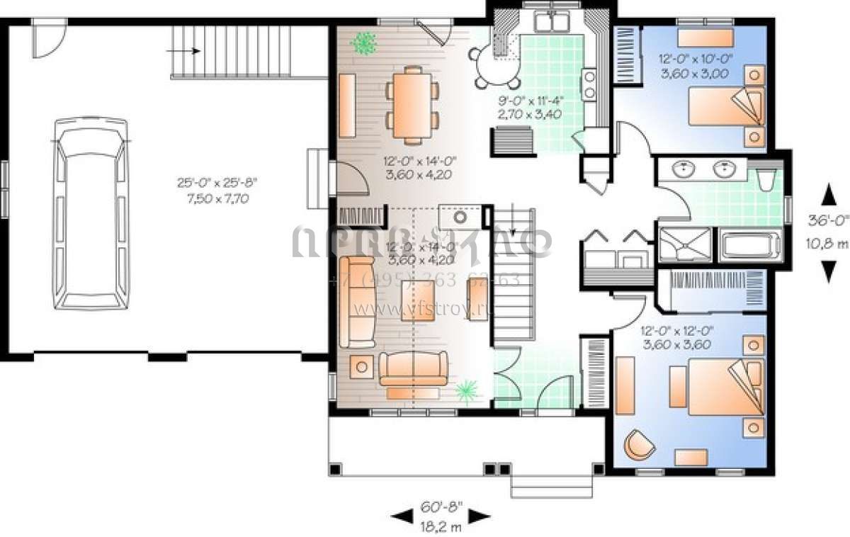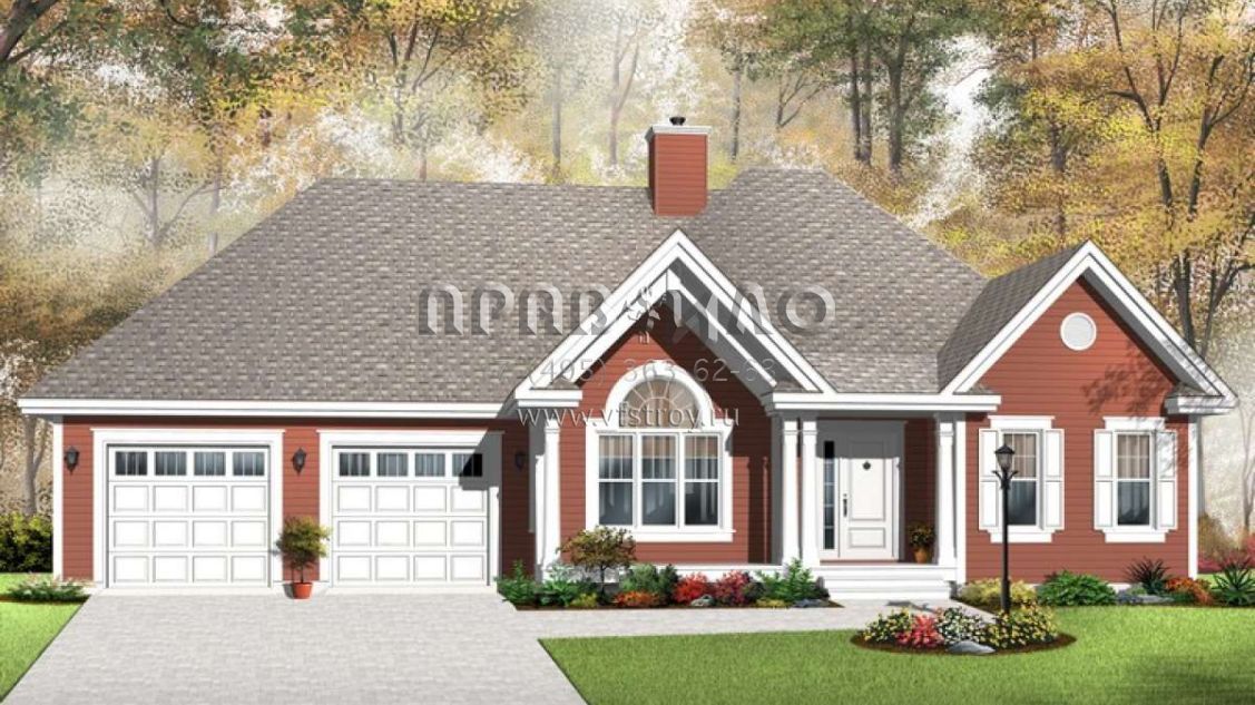 Проект одноэтажного дома с гаражом на две машины в стиле Ранчо S5-110 (034-00977)
