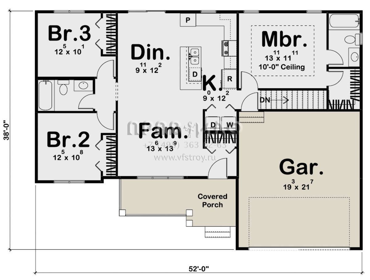 Проект одноэтажного дома с гаражом на две машины в американском стиле S5-110 (963-00140)