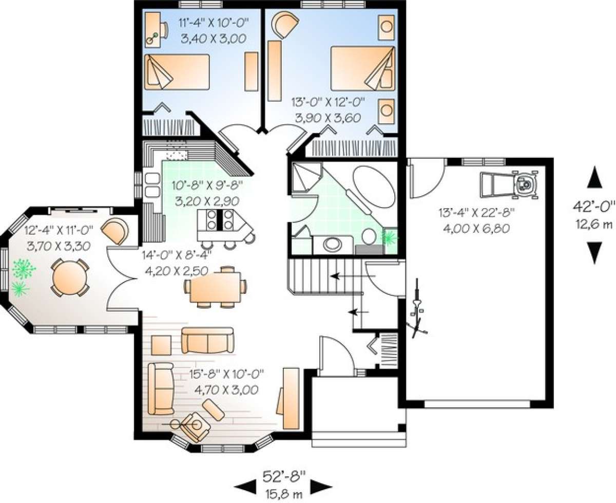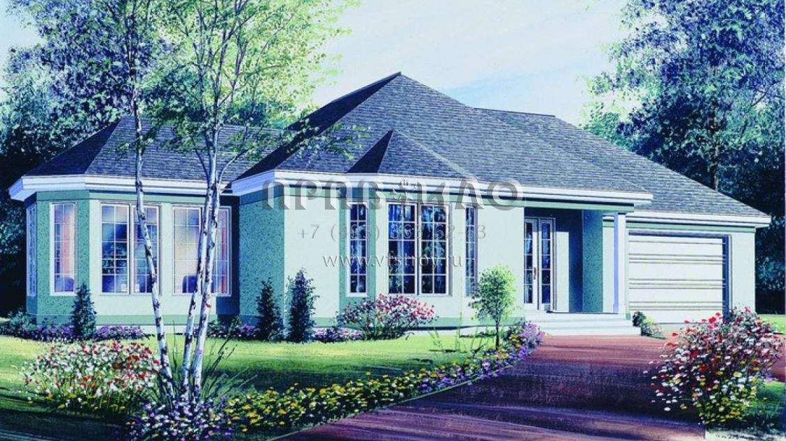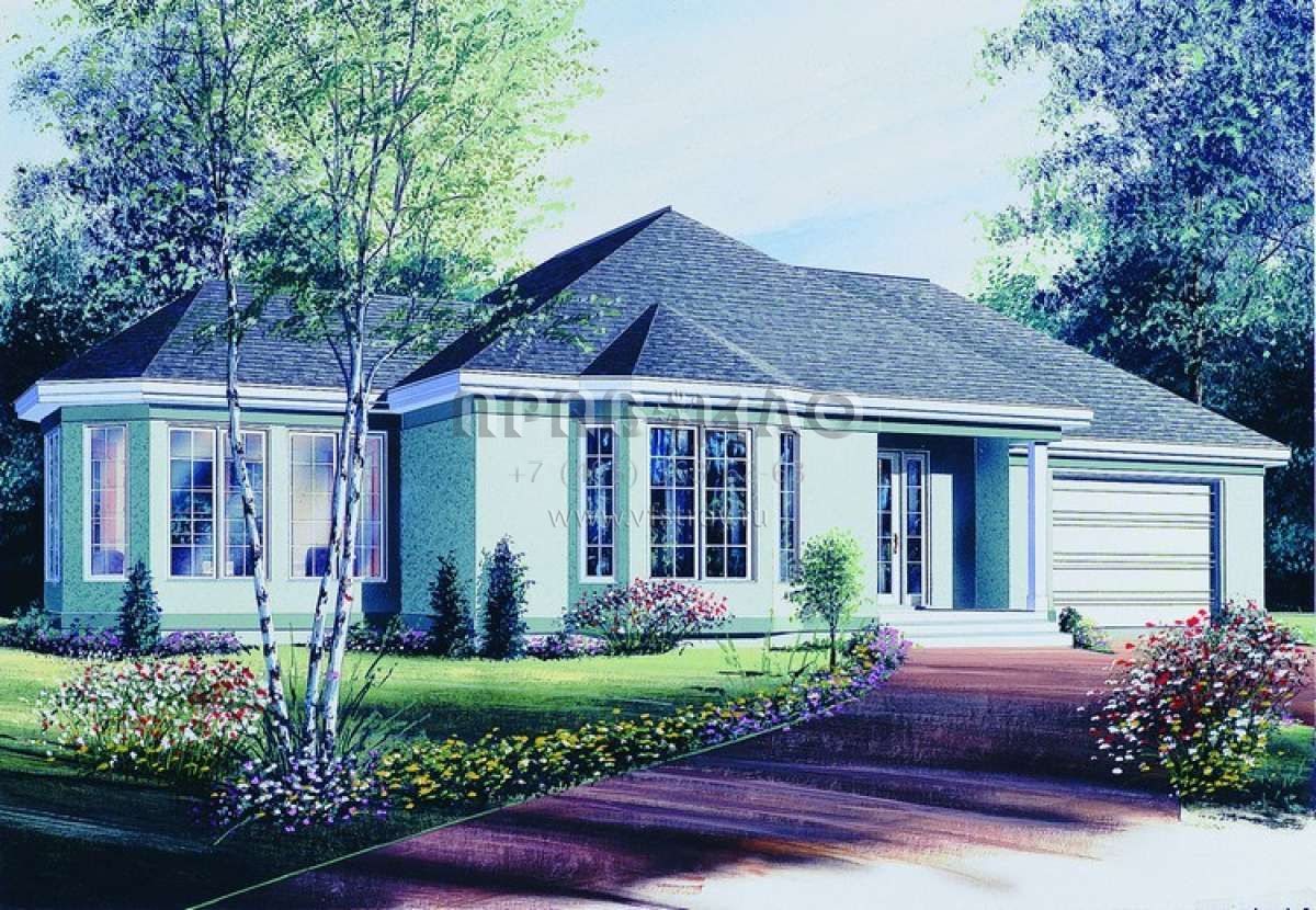 Проект одноэтажного дома с гаражом на одну машину в стиле Ранчо S5-111 (034-00342)