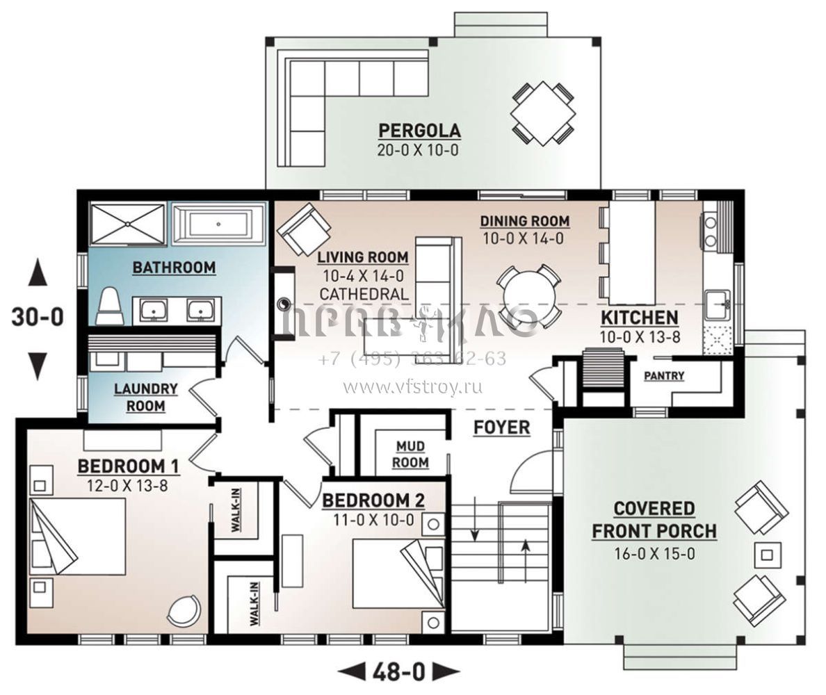 Проект одноэтажного дома без гаража в современном стиле S5-111 (034-01205)