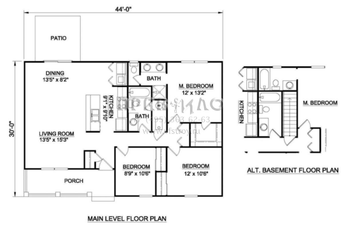 Проект одноэтажного дома без гаража в стиле Ранчо S5-111 (340-00011)
